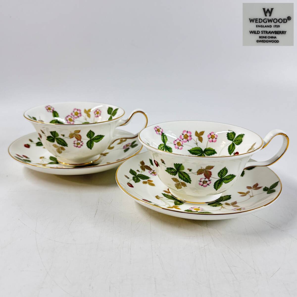 WEDG WOOD ウエッジウッド ENGLAND 英国製 WILD STRAWBERRY ワイルドストロベリー カップ&ソーサー 2客セット 経年保管品 現状品の出品です。