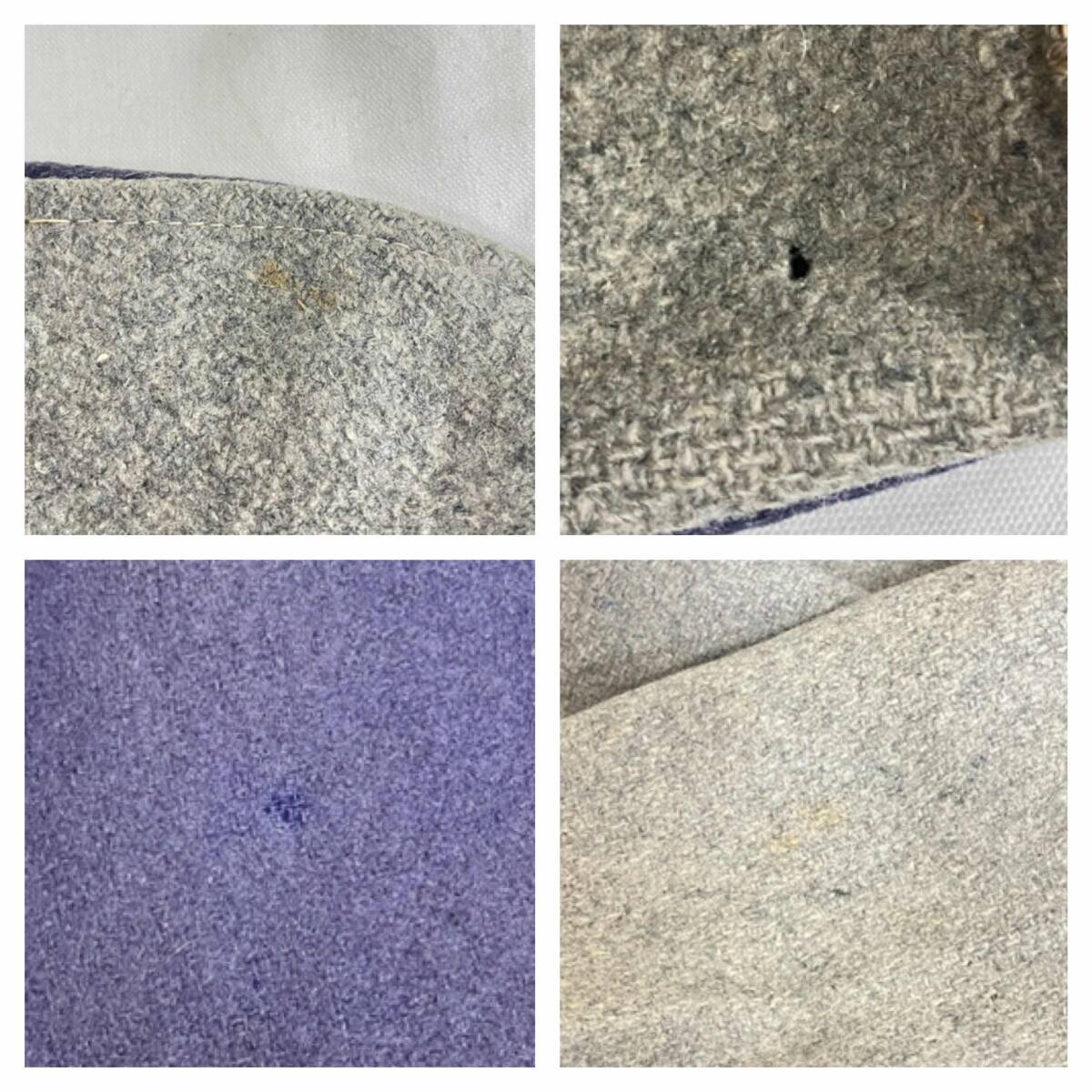 | 全体的に使用感がございます。 左肩・右袖に汚れが有り、左袖に小さな穴、右胸あたりに生地が薄くなっている部分がございます。 写真にてご確認くださいませ。 ※商品には写真では確認しづらいダメージや汚れがある場合がございます。 |