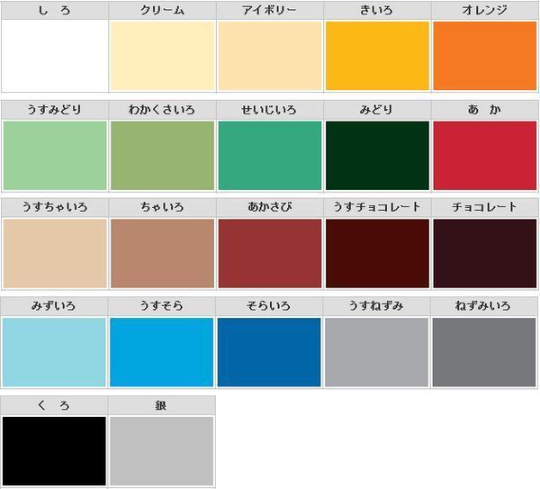 | ■以下の色見本を参考に色をお選びください。 (オーダーフォームのご要望欄にご記入ください。) ![]() | ||||||||||||||||