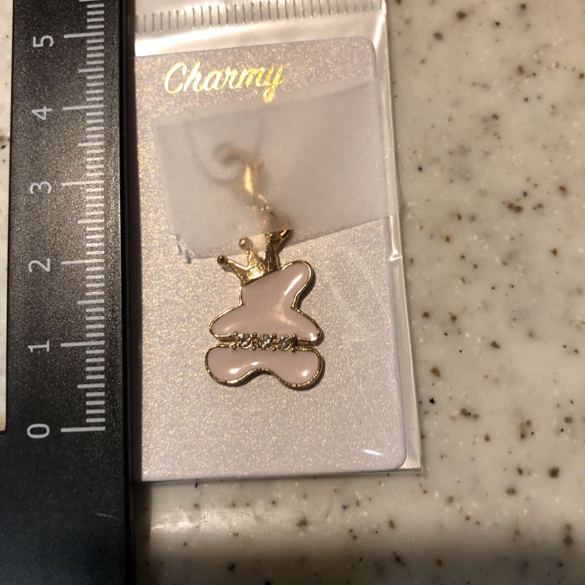 Charmyのクマ王冠チャームです。可愛らしいピンク色で、王冠をかぶったクマのデザインが特徴です。未使用品ですが、自宅保管のため、ご理解いただける方にご購入をお願いいたします。| 出价者 | 信用 | 价格 | 时间 |