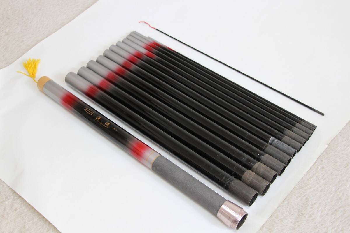 | ★商品説明★ | ■ 渓流450 全長: 450cm 仕舞寸法: 41cm 継ぎ数: 15本 重量: 250g ■ 渓流360 全長: 360cm 仕舞寸法: 54cm 継ぎ数: 9本 重量: 150g 渓流360は、2本目に写真のとおり、擦り傷があります。 使用感はありますがまだまだ使用できる商品です | |