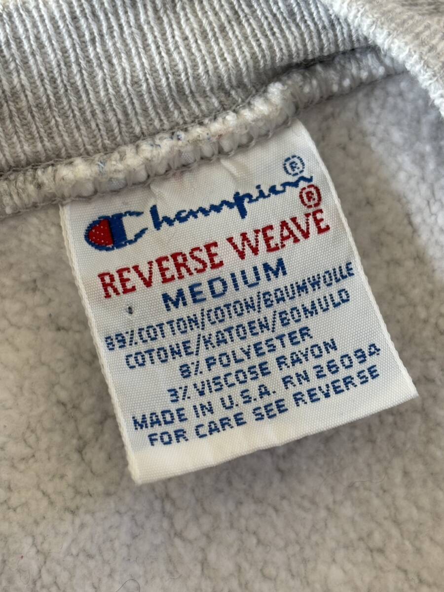 REVERS WEAVE SWEAT リバースウィーブ スウェット 状態: 米国製 MADE IN USA 古着 表記サイズ: MEDIUM 実寸: 着丈約62cm 身幅約51cm 肩幅約44cm 袖丈約59cm 素材: コットン89% アクリル8% レーヨン3% カラー: シルバーグレー 『 Champion チャンピオン REVERS WEAVE SWEAT リバースウィーブ スウェット 』 ・米国製 90年代の前期刺繍タグです。 チャンピオンらしいシルバーグレーのボディにワンポイント刺繍。袖にCマークがあります。 ・古着特有の着用感はありますが、目立つ汚れやダメージは見受けられません。年代のわりにコンディションも良く古着慣れされた方なら問題ない状態かと思います。わずかなステッチのホツレや首元のわずかな黄ばみ、目立たない穴はご了承ください。出品前に洗濯済みです。 ・今回、コレクションしていた80年代90年代のコンディション良好チャンピオンスウェットを多数出品しましたので、是非ご覧ください。 | ||||