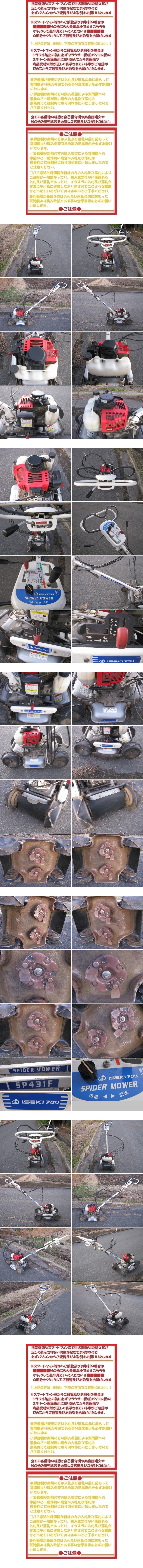 ★イセキ (オーレック製) スパイダーモアー SP431F ●リコイルスタート式の混合燃料エンジン ●排気量:47.1cc ■本体外寸 奥行き 約1680㎜ × 横幅 約820㎜ × 高さ 約1000㎜ (画像1の状態にて) ■スケルにて計測していますので絶対値ではありません。 (レバー&ハンドル&各部各所の最大張り出し部分を含んでおります。)■■■■■ オーレック スパイダーモア SP431F の 取扱説明書 です!!クリックしてご確認ください!!■■■■■