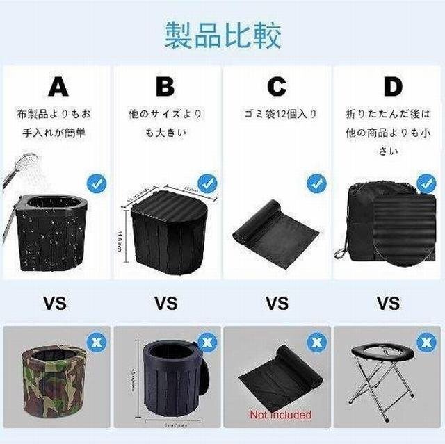 フタ付き 簡易トイレの便座にピッタリと閉まる蓋つきタイプのポータブルトイレなので、気になる匂い漏れをシャットアウト。 防災対策 断水、停電、災害、渋滞、介護、アウトドア、キャンプ、旅行、登山、ドライブなど緊急用としていつでも携帯できるトイレです。 また本体は水洗いが可能なので、次回使うときまで清潔に保管しておくことが可能です。 シンプルなデザイン/使いやすい 携帯トイレは折りたたむことができ、必要に応じて簡単に開けて使用できます。 緊急事態に最適 さまざまな緊急事態で使用できます!折りたたみ式簡易トイレ虚弱な高齢者や不便な患者、子供、妊婦などあらゆる人に適しており,トイレにすぐ行けない場面では非常にポータブルトイレが役に立ちます。 製品は保管が簡単で、時間を大幅に節約できます。