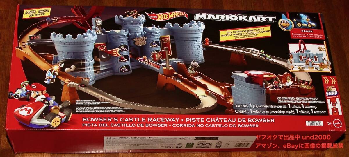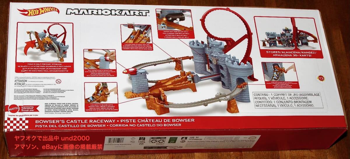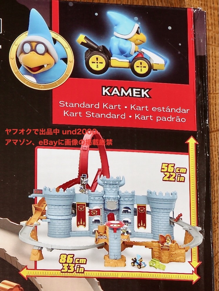 こちらは箱が大きく送料が東京2000円 ー沖縄2740円と高額になりますので、ご注意ください。マテル、Hot Wheels、Mario Kart、Bowser’s Castle Raceway。単品未発売のカメック・スタンダードカート付。組み立てると幅86センチ、高さ56センチになるようです。マリオカートのミニカーを30台+収納できるスペースがあるようです。以下はメーカーの商品説明文(英文翻訳)になります。「ホットウィール マリオカート クッパ城トラックセットで、壮大なレースアドベンチャーを楽しもう! ホットウィール マリオカートの世界に初登場する1/64スケールのダイキャスト製カメックが付属。セットの全長は34インチ以上。繰り返しレースができるスラムランチャーと、ラップを記録するフラッグが付属しています。突然現れてレーサーをコースから落としてしまうキラー(ブレット・ビル)に気をつけろ! お城にはリフトやファイアーゲイトなど、コース遊びにぴったりのクールなディテールが満載。さらに、ファンや5歳以上のお子様ならきっと気に入る、キャラクターに忠実なデザインも魅力です。」「1/64スケールのダイキャスト製カメックと一緒に、ホットウィール マリオカート クッパ城トラックセットでレースやスタントを楽しもう! この大型プレイセットには、ループを使ったインタラクティブなレース、スラムランチャー、そしてカメックをコースから落とそうと急降下してくるいたずらっ子のキラー(ブレットビル)が登場。30台以上の乗り物を収納できるスペースがあり、遊んでいない時はディスプレイとして飾って楽しめます! 初登場のダイキャスト製カメックが付属。追加の乗り物は別売りです。セットは折りたたんで簡単に収納できます。色や装飾は異なる場合があります。」 並行輸入品のため、日本語の説明書はありません。箱のサイズ、約76X33X13センチ。未開封品なので、ノークレームでお願いします。箱にスレ、弱いへこみがあります。量産品の製品のクオリティーについては、ノークレームでお願いいたします。お支払いはヤフーかんたん決済のみ。発送は東京発、ゆうパック140サイズ(東京2000円 - 沖縄2740円)となります。(こちらのみ、他の落札物と同梱包不可。)3日以内のご連絡、かんたん決済の支払期限内(通常5日、支払方法により異なります)のお支払い厳守でお願いします。入札される前に「自己紹介」もあわせてお読みください。 検索用ワード ホット・ウィール ホット・ホイール 任天堂 Mario Kart Kamek| 出价者 | 信用 | 价格 | 时间 |