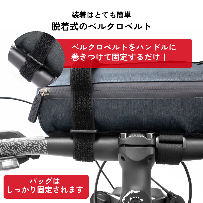 防水・撥水性あるフロントバッグにレインカバーが付きとても実用的。 大きすぎて野暮ったくならずコンパクトでシンプルなデザイン。 ベルクロベルトで装着するので簡単に脱着が可能です。 5か所に通せる場所があるのでロードバイクやクロスバイク、mtb、ミニベロなどのドロップハンドルからフラットハンドルまで 様々なタイプの自転車に取付可能に。 短距離ライドやセカンドバッグに最適な自転車バッグです。 [防水・撥水] 日常レベルOKな撥水ナイロン生地を採用。 防水ファスナーを使用し隙間からの水の侵入をカットします。 [レインカバー付属] 強めの雨や長時間なら付属のレインカバーをして対策を。 すぐに装着できるので実用的です。 [デザイン] コンパクトで無駄のないシンプルなフォルム。 野暮ったくなくスタイリッシュな大人向けデザイン。 [様々な自転車に] 5か所のどこでもベルクロベルトを通せるので 自分にあった調整ができます。 [脱着簡単] ベルクロベルトをハンドルに巻き付けるだけ! しっかりと締めればバッグはぶらつかず安定します。 [容量] 容量約1.95L。 スマホや鍵、小銭ケース、チューブなどを収納できます。 短距離ライドや脱着簡単なのでセカンドバッグに最適です。 中にはメッシュポケット、サイドにもポケットあり。 [反射] 前にはリフレクターストラップデザインと反射ロゴで 対抗に対し視認性がアップ。安全性が向上します。 商品内容フロントバッグ、レインカバー付属 サイズ長さ225mm x 径105mm 容量約1.95L 重さ約110g 素材日常レベル撥水性ナイロン生地 防水ファスナー TPUの防水生地のレインカバー ※完全防水ではありません ・商品は入荷によりキズがある場合があります。 ・保証対象外になりますのでご了承お願い致します。 ・ディスプレイ環境により実物と色が異なる場合が有ります。 ・入荷時期により予告無く一部仕様変更する場合が有ります。 | |