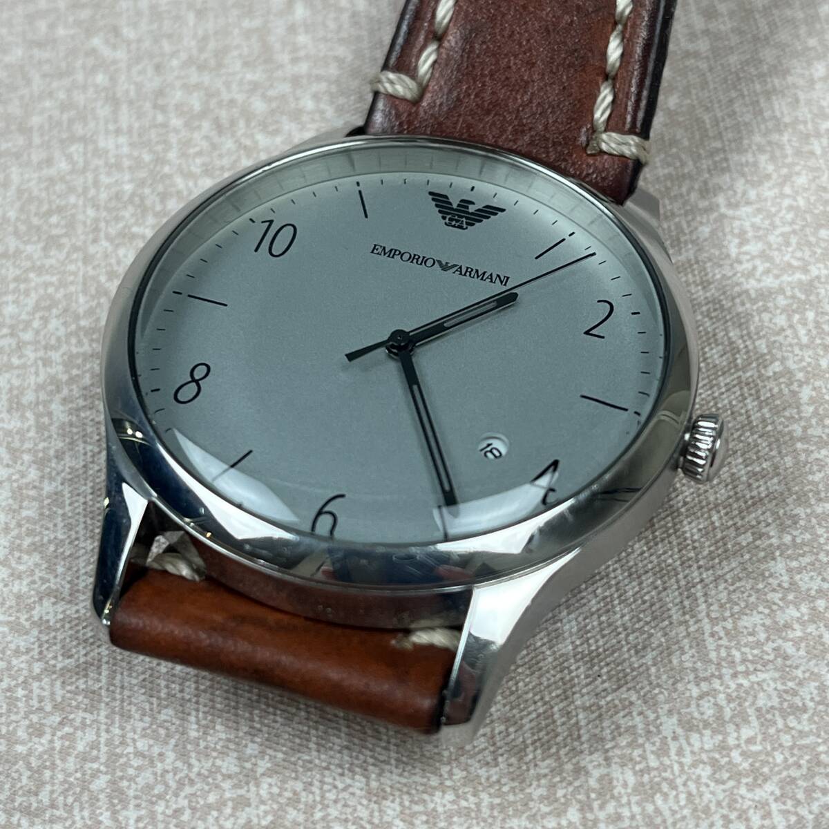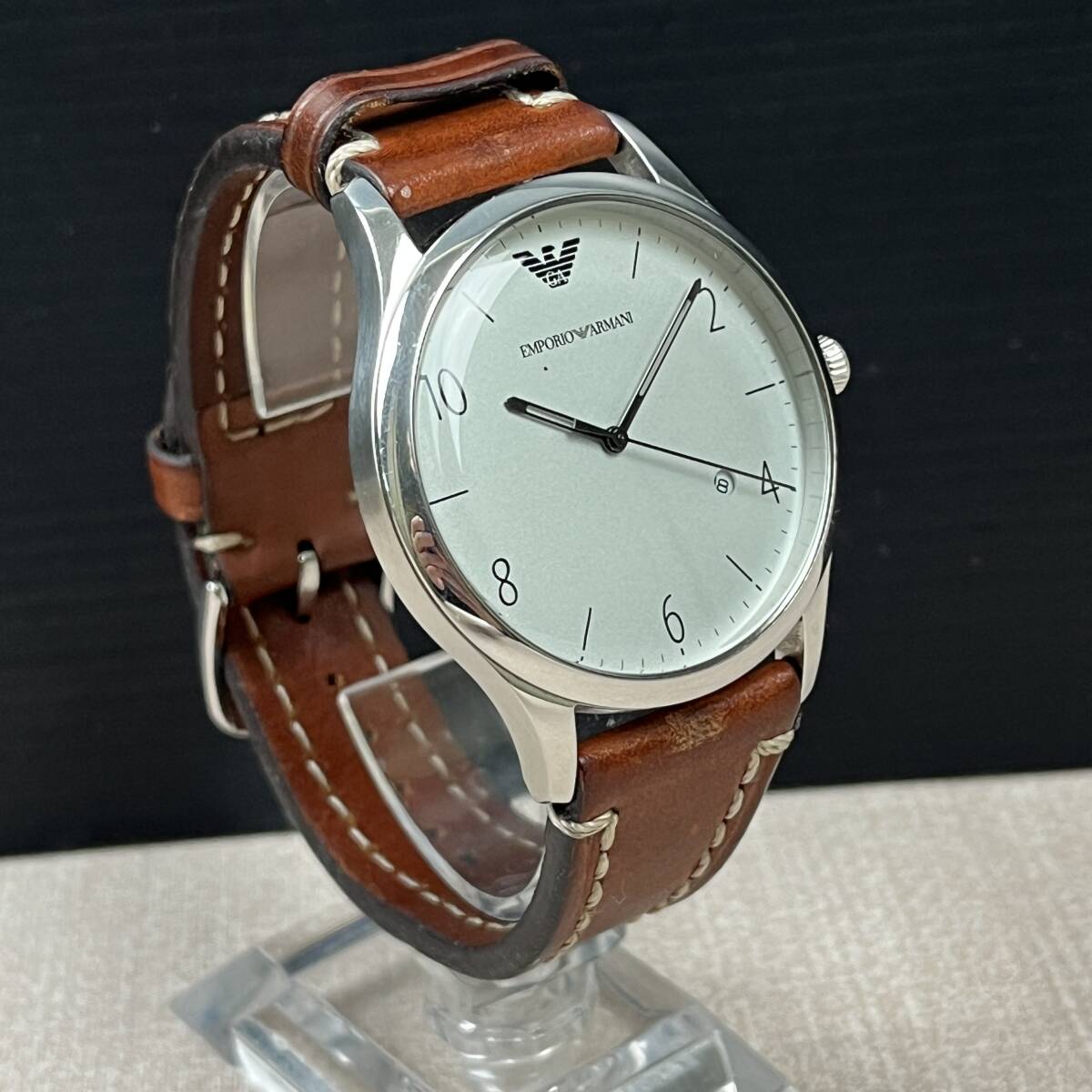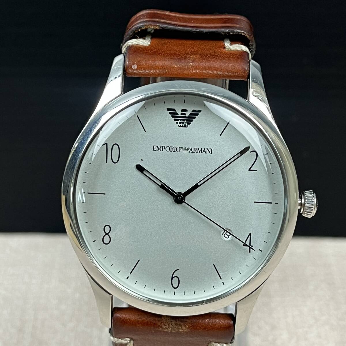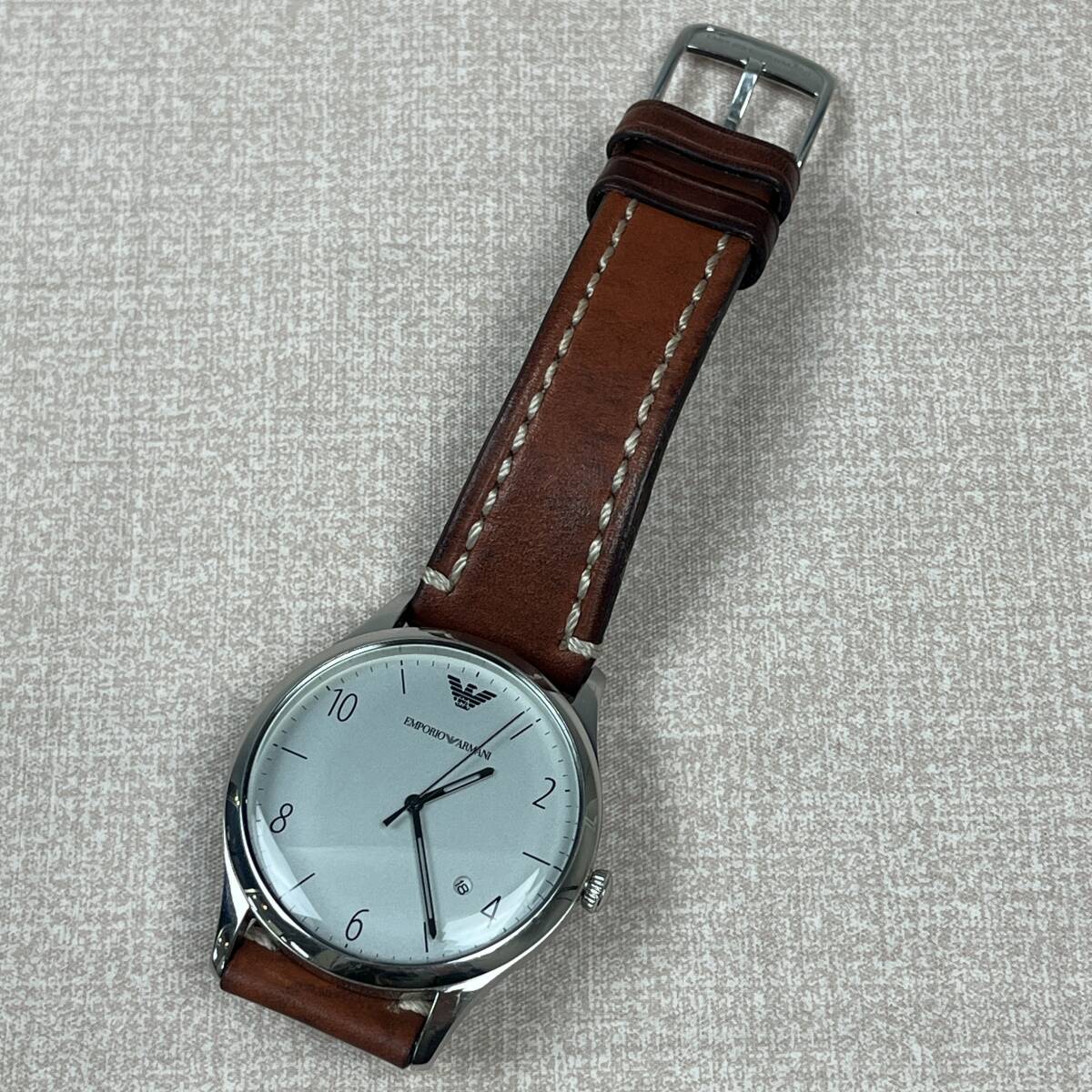 ★商品管理番号 55-6912 ★商品名 EMPORIO ARMANI エンポリオ アルマーニ メンズ 腕時計 クォーツ式 AR-1880 ブラウン シルバー系 ★腕周り 約 16~21cm ★サイズ ケース幅:41mm ベルト幅 ラグ幅: 22mm ★商品状態 出品時点では動作確認済 現状渡し商品になります。 中古の為スレ、小傷などがございます。 画像の状態をお確かめください。 ※出品依頼商品に付き、詳しい質問等のお答え出来ない場合がございますので、ご了承下さい。 ※記入ミス記入漏れは現物優先でお願いします。 ★商品について 画像に写ってる物が全てです。 ※撮影時の照明やご使用のモニターなどにより商品が綺麗に写りすぎていたり、 実際の色と多少異なる場合がございますのでご了承のほど、よろしくお願い致します。 ★発送方法 手渡し大歓迎です。 送料無料 ※領収書を希望される方は、落札後取引メッセージにご連絡下さい。 ※落札後、評価不要の場合は評価は入れない様にお願い致します。 ※当社の詳しい所在地はこちらのホー ムページをご覧下さい。 | ||||