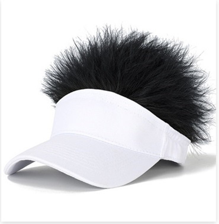 ウィッグ付サンバイザー 白帽子 ヘアカラーブラック カツラ ウィッグヘア 髪の毛付き ウィッグ付き アウトドア スポー ゴルフ n544