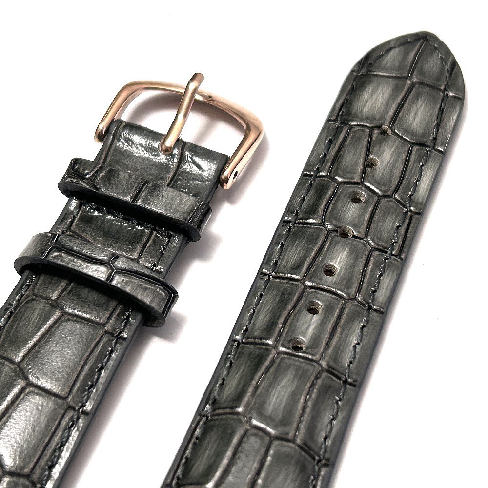 パティーヌ調の本革型押しクロコレザーの時計用ベルトになります。 カラーはベルトがグレーで、バックルはローズゴールドです。美しい陰影の付いたヴィンテージ加工が、素晴らしくラグジュアリーなベルト。根元には厚みがあり縫製もしっかりとしており、リアルクロコダイル以上の存在感とクオリティを感じさせる非常に華やかな一品です。従来の型押しレザーとは一線を駕すレベルです。 さらにはこちらオリジナルでアップルウォッチ用のコネクターをお付けしますので、通常時計とアップルウォッチの2種類を楽しんでいただけます。当方からしか購入出来ないオリジナルの物ですので、ワンランク上のベルトをコスパ良くつけたい方に是非お勧めです。 【こちらの色違い商品も出品しておりますので、よろしければご覧下さいませ。】 |