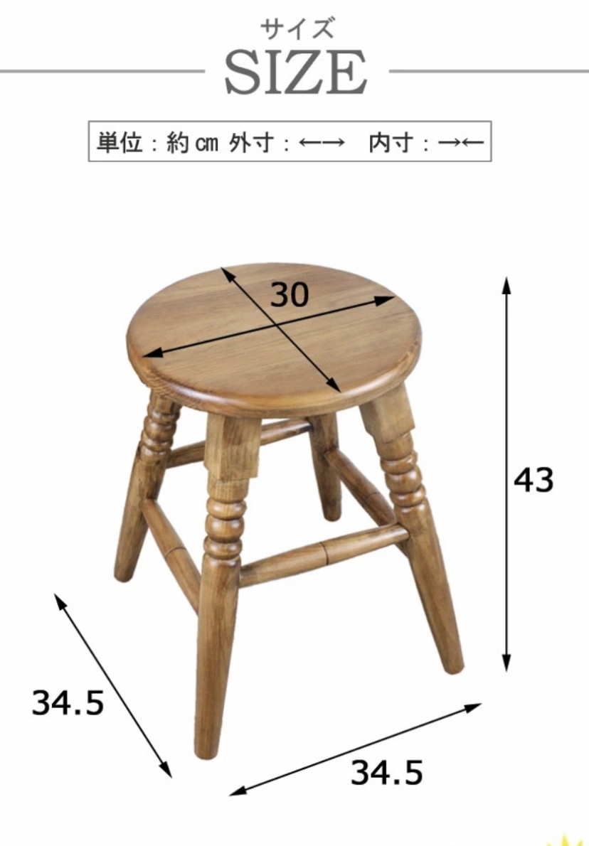 | ◆◇商品詳細◇◆ パイン材丸スツール 北欧デザインの素敵な木彫脚パイン材丸スツール新入荷です。材質は軽くて持ち運びに便利なマツ科のパイン材使用です。ナチュラルな木目模様が特徴的で、軽さの割に丈夫な木材です。スツールにはもちろん、花台やショップのディスプレイ、おしやれなマルチ台として使い方は様々です!座面が広めで安定感があり、すごく座りやすい商品ですよ!人気新商品が今だけこの価格!他では買えない商品をぜひこの機会に♪ 【商品状態説明】 美品。 完成品になります。 ・こちらの商品は、現品画像ではありません。 未開封の在庫の中から丁寧に検品後、綺麗な商品を発送いたします。 【サイズ】 横幅:34㎝(天板直径30㎝) 奥行:34㎝ 高さ:43㎝ 【素材】 パイン材無垢 【カラー】 ライトブラウン | ◆◇発送方法◇◆ ●送料は基本無料ですが、沖縄・離島などにお住まいの方はご負担ください。 (沖縄・離島の方はメールにてご連絡いただければ、送料をお知らせいたします。) ●ヤマト運輸・佐川急便・第一貨物のいずれかにて配送いたします。 (運送会社の指定はできません。ご了承ください。) ●日時・時間指定のある方や、お問い合わせ(追跡)番号をご希望の方は取引連絡の際にお知らせください。 | |