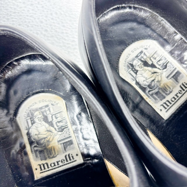 ご覧いただき、ありがとうございます。 オシャレで高級感のあるmarelli マレリーのビジネスシューズです。 デザイン性:機能性共に定評のある商品です。 1足押さえてあるとファッションの幅も広がり大活躍するお勧めの商品です。 中古品のため、スレや傷、ヨゴレ等ありますが、その分お値打ちにしております。 詳しい状態は画像でご確認ください。 商品のサイズについて 表記サイズ 25.0EEE アウトソール全長 約26.2cm 全幅 約9.6cm (素人採寸) ●状態①「外観」 履きジワ、着用に伴う擦れ、傷がございますが、着用に支障はございません。 くわしくは画像で確認ください。 ●状態②「ソール・インナー」 インソール内ロゴ残っています。 カカトの削れ等、詳しい状態は画像でご確認ください。 ●その他・付属等なし、シューズキーパーは撮影用です。 | |||