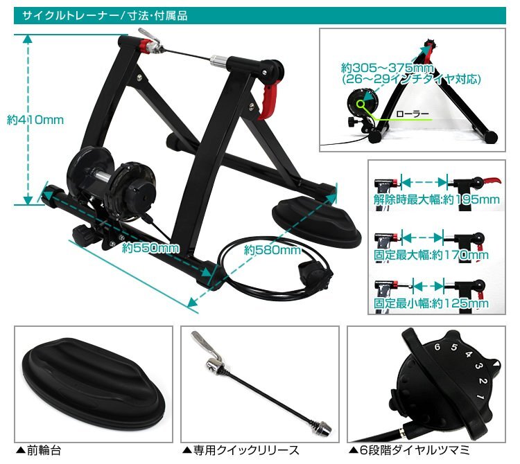 25インチ~29インチのロードバイクやマウンテンバイクなど様々な自転車を使って屋内で簡単にトレーニングができます! 磁気抵抗(マグネット)のため簡単にお好みの負荷に調整することが可能です。 また音も三本ローラー台や遠心負荷よりも静かなことも特徴です。 前輪台やクイックリリースまでも付属しているので、すぐトレーニングできます。 【商品仕様】 サイズ(約):550mm×580mm×410mm 負荷方式:磁石式(マグネットユニット) 6段階負荷調整リモートダイヤル 対応タイヤ:25~29インチ 本体重量(約):7kg (自転車 2台 室内 フック スタンド式 ディスプレイ 簡単設置 省スペース収納) |