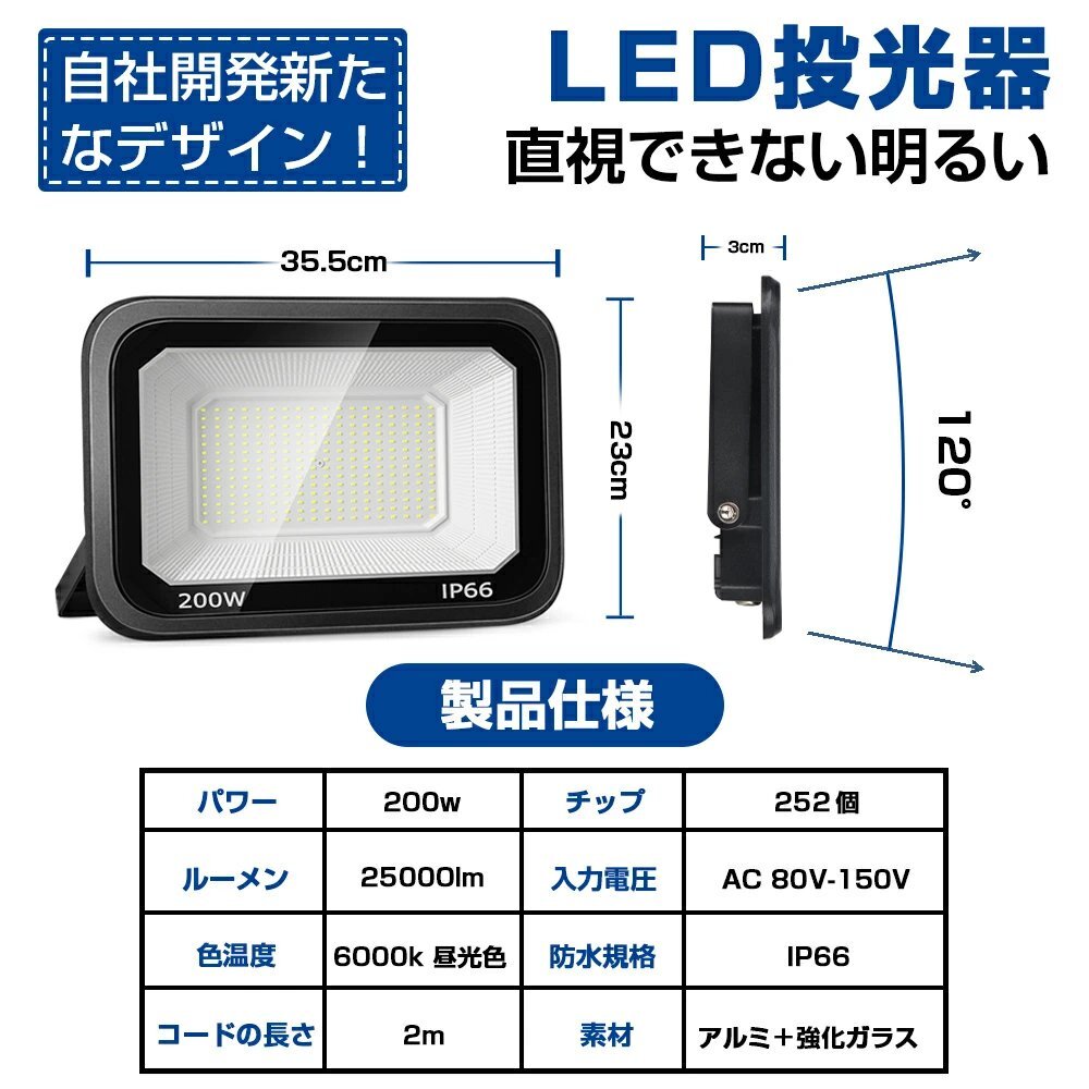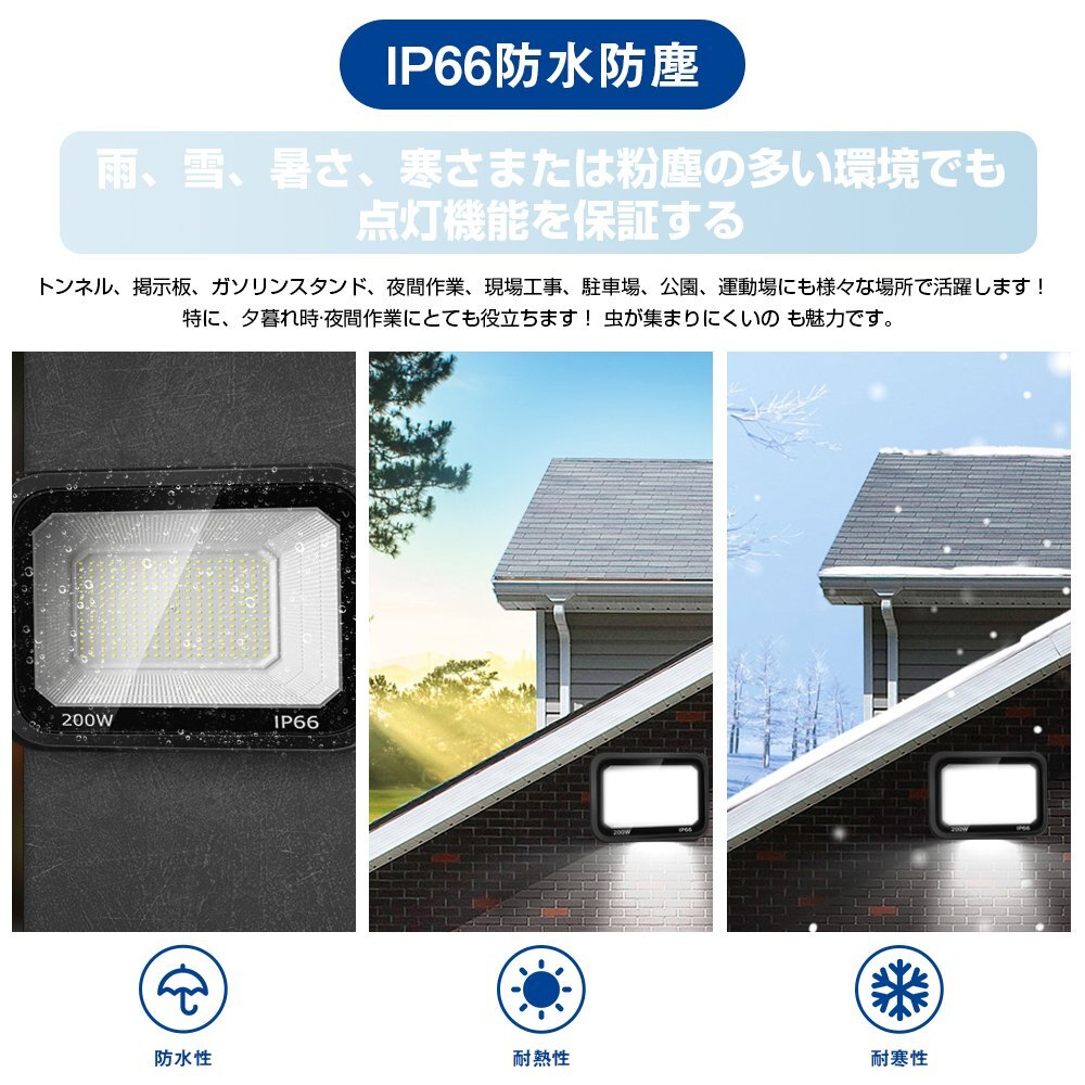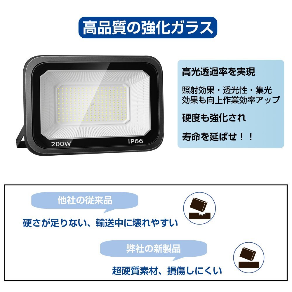 【商品詳細】 ◆超高輝度200W、効率抜群: 超高輝度LED投光器、全252個チップのデザインを採用して、定格光束25000lmに達します。強化ガラスを採用して、高輝度昼光色を生成できます、高光透過率を実現させました。照射効果、透光性と耐震性も向上します、反射效率アップ!120°の照明角度ができますので、広い範囲に照射可能になり、屋外と部屋の隅々をより効率的に照らすことができます。 ◆優れた耐久性、放熱性up: 熱は投光照明の寿命が短くなる重要な理由です。一般的の従来品は明るさが使用時間とともに徐々に減少することになります、そのため、長時間で明るさを維持できません。弊社の新製品は他社さんを徹底研究して、高品質黒アルミ合金を採用されます、充足な冷却スペースが確保され、同時に冷却面積が増加します。放熱効果が大幅に向上し、散熱性能アップ!長寿命点灯することを実現できます。さらに、他社の従来品に比べて耐久性も改善され、最大50,000時間以上持続します。 ◆IP66防水防塵、長寿命化: LEDライトIP66防水防塵に達し、雨、雪、暑さ、寒さまたは粉塵の多い環境で正常に機能することを保証します。適用範囲を拡大するとともに、耐用年数も延長し、長寿命化を実現させました。庭、庭、倉庫、ガレージなどの屋外照明に最適です。緊急時でも、投光器があれば大きな役割を果たすことができます。 【保証】 ◆当商品は12っヶ月保証となります。 ◆お届けから1週間以内にご連絡のあった不良品の保証対応の送料は当方が負担いたします。 ◆保証期間内の不良品ですが、交換のみ対応しております。往復送料はお客様負担となります。在庫がない時だけ返金しますので、ご了承ください。 |