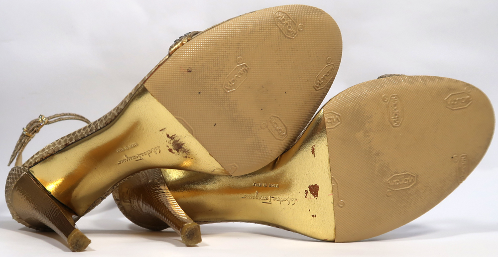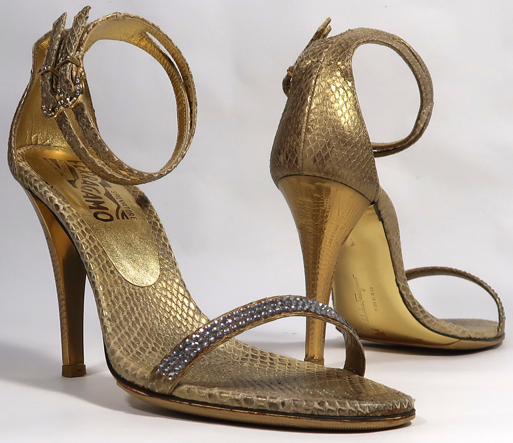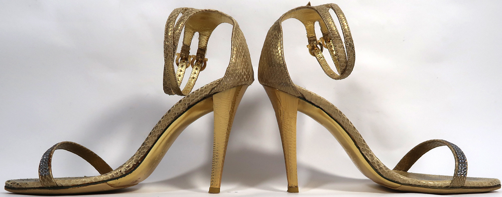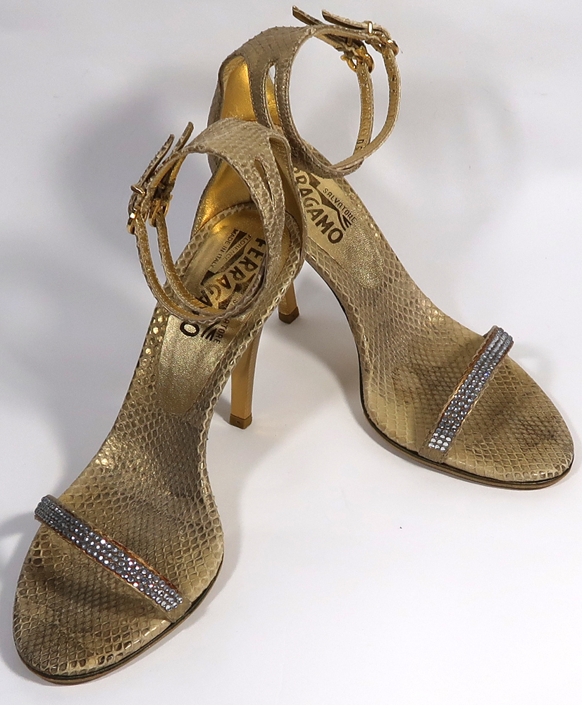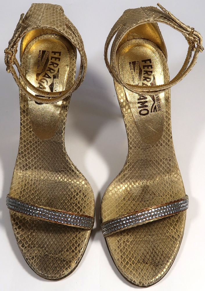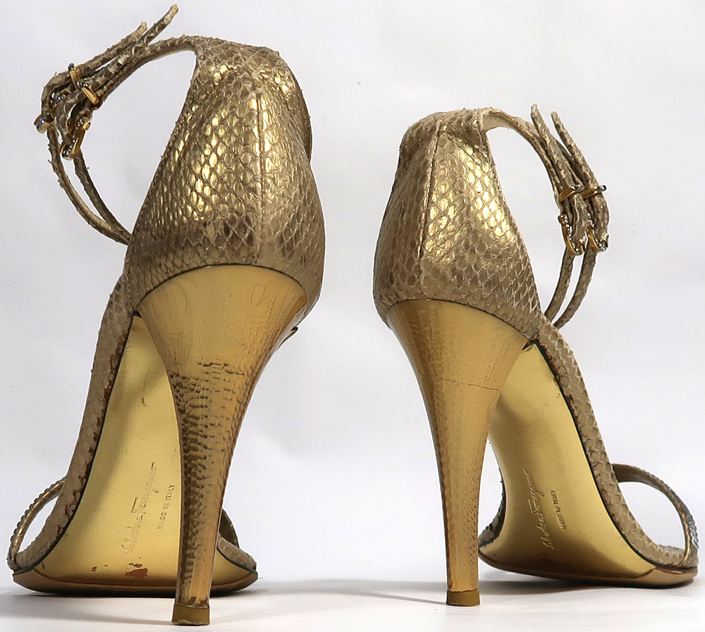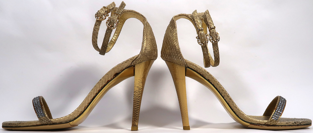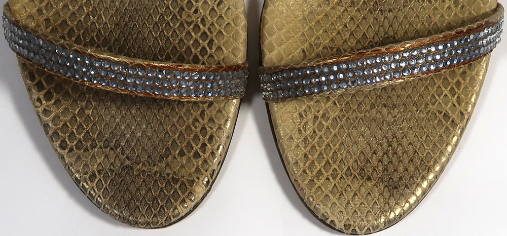 出品は画像の靴のみです。使用品ですのでしわ、汚れや擦れが有ります。擦り傷が有る箇所もあります。ストラップに付いているラインストーンが3個取れています。画像をご覧ください。そのほか靴が履けないようなひどいダメージはないです。ヒール高は9cmくらいです。