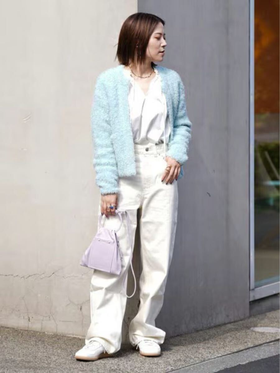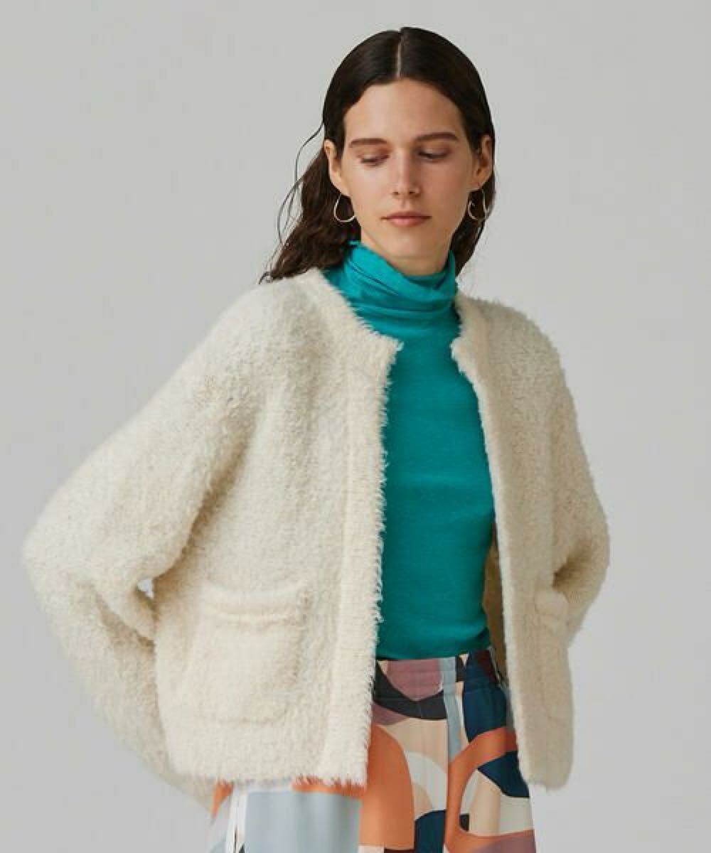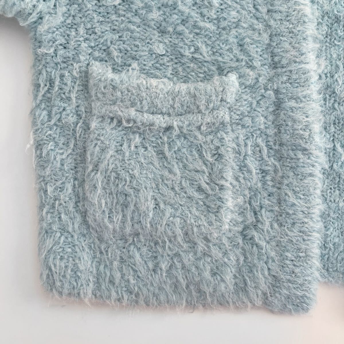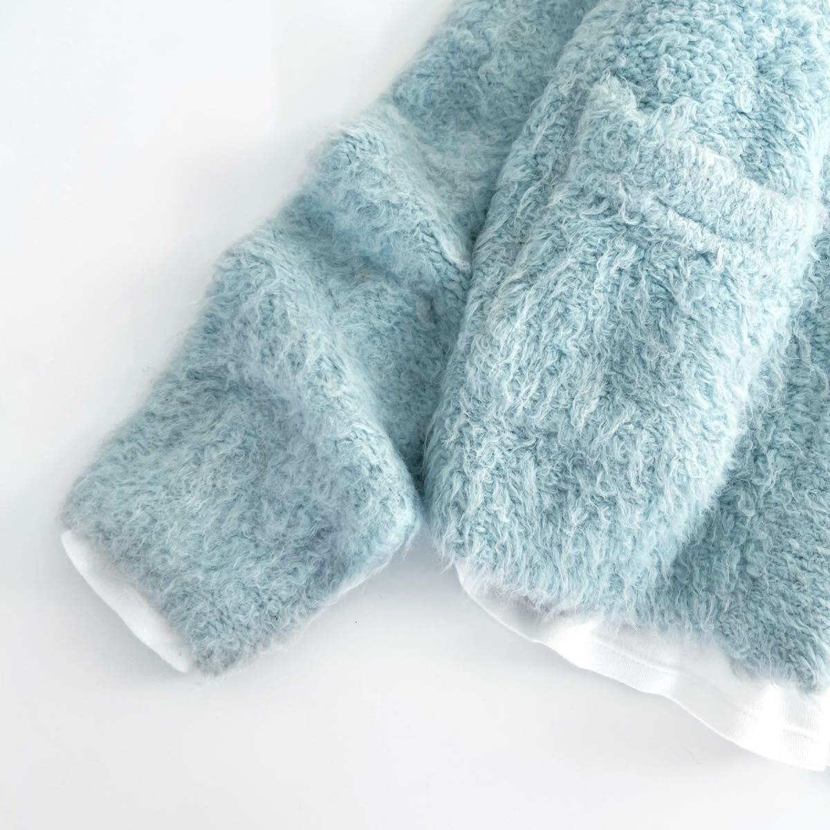 定価26400円 アルパカ混紡のヘアリーなタッチが魅力のファー素材を使用したカーディガン。 丸みのある肩のラインやボタンレスのデザインで抜け感のあるバランス。 ワンピースやハイウエストボトムスとも合わせやすいコンパクトな丈感もポイント。 シンプルなデザインながらコーディネートに女性らしいソフトな雰囲気を演出してくれるアイテムです。 元々少し毛羽立ったような素材ではありますが、着用した際の使用感もありますので画像でご確認の上ご検討ください。 【ブランド】 BALLSEY 【カラー】 ブルー 【表記サイズ】 S 【平置きサイズ】 着丈 45cm 身幅 56cm 肩幅 50cm 袖丈 54cm 【素材】 アクリル34% アルパカ30% ナイロン24% ウール12% 他にも多数出品しております。 こちらをクリック |