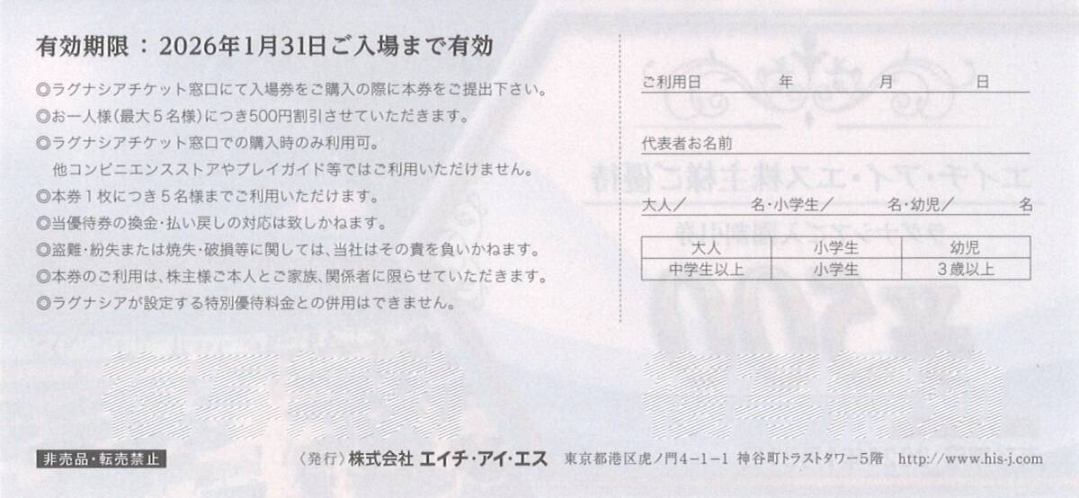 有効期限は「2026年1月31日」です。 本券1枚でお1人様500円割引となります。 本券は1枚につき最大5名様(最大2500円割引)までご利用いただけます。 ※詳細につきましては、画像やホームページをご覧ください。 |