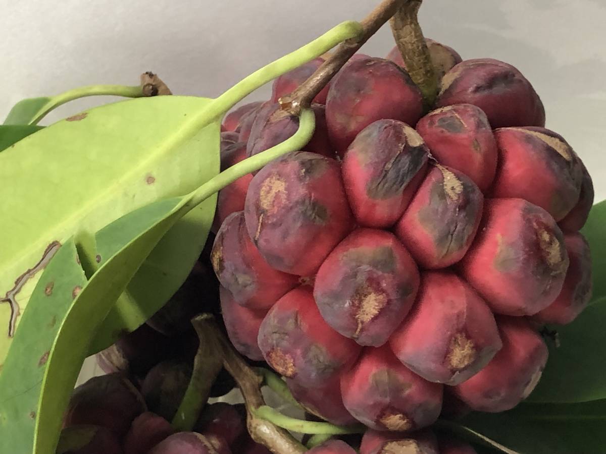 ★「黒老虎」という果物。中国読みは「ヘイラオホ」というようです。またの名をドラゴンボールと言います。