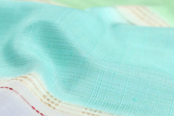 さらりとしたゴールデンタイシルクの生地は、帯地には節糸が施されており、風合いがございます。
