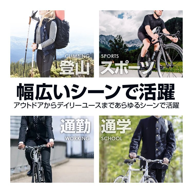 登山やソロキャンプ等のアウトドアをはじめ、サイクリング等のスポーツ、通勤通学やランドセル、フードデリバリーなど幅広い用途でお使い頂けます。