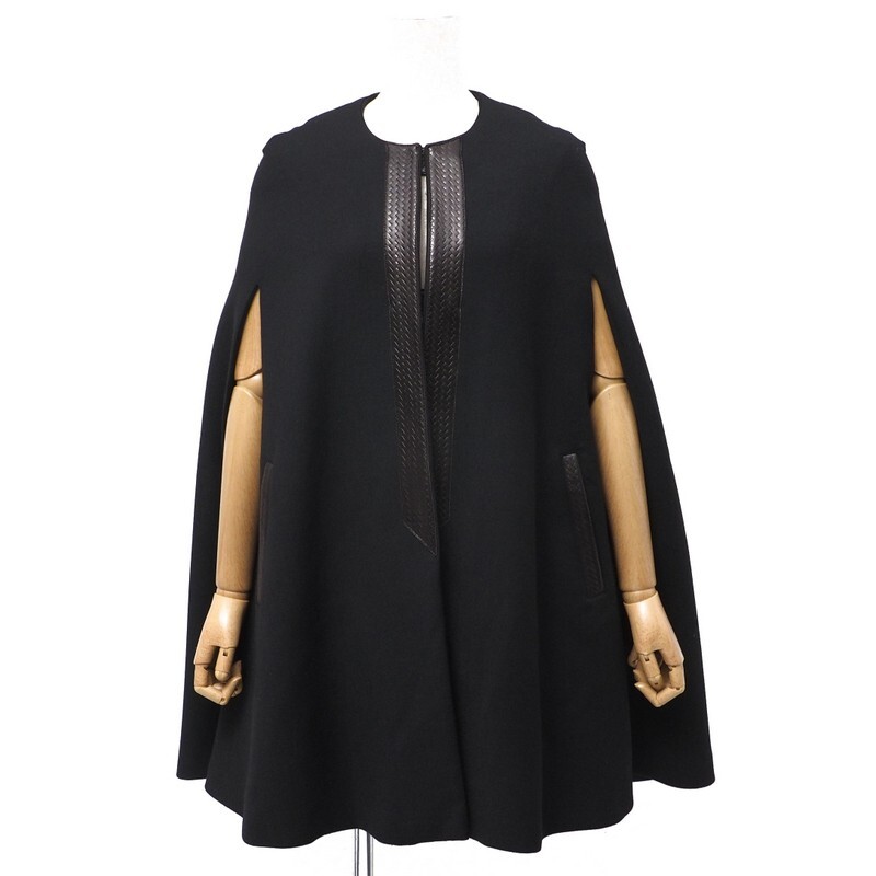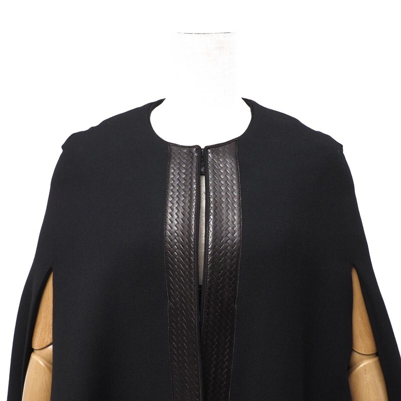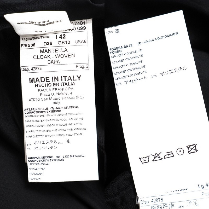 | GS0877▼イタリア製*パオラ フラーニ/PAOLA FRANI*ポンチョコート ケープ レザートリム サイズ42 ブラック×ブラウン | |||