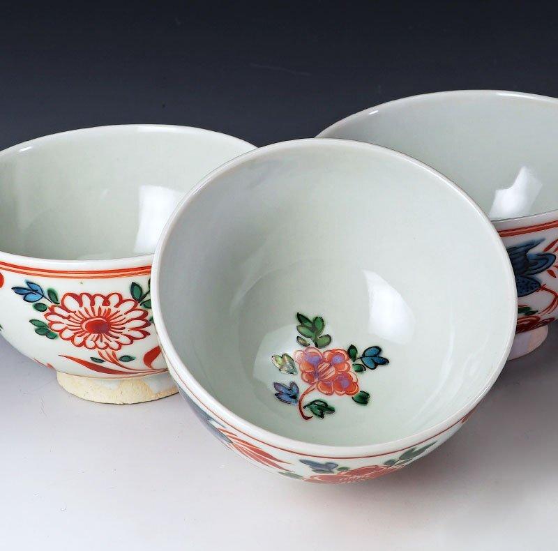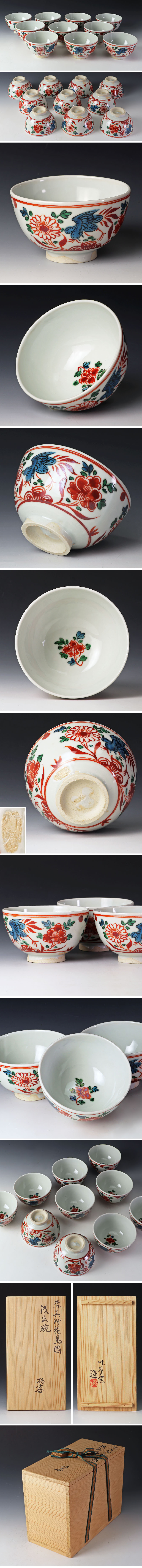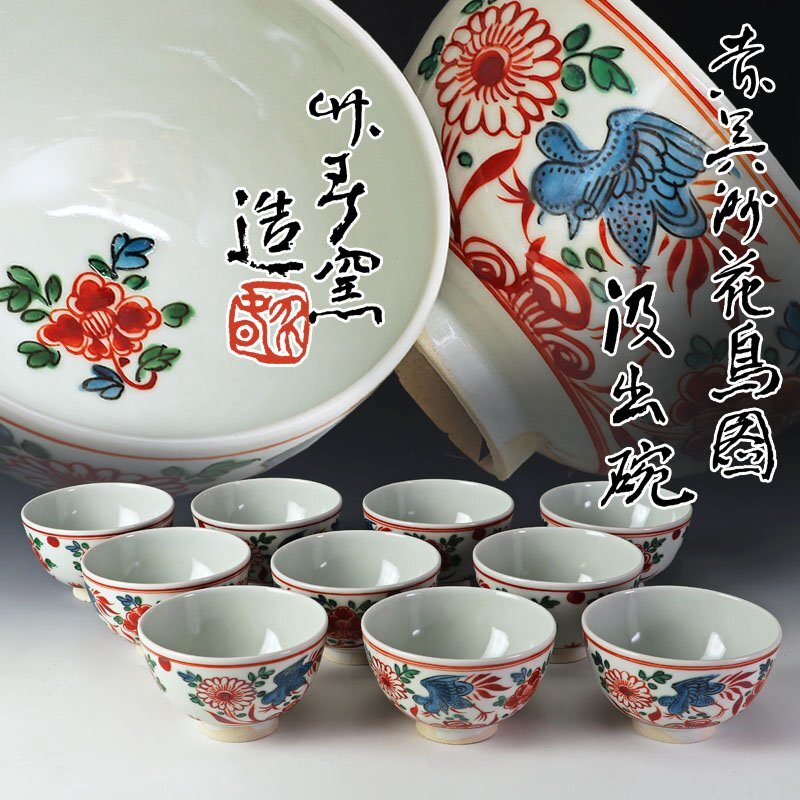 | 【古美味】川瀬竹春窯造 赤呉須花鳥図汲出碗 十客 茶道具 保証品 |
