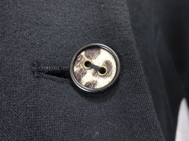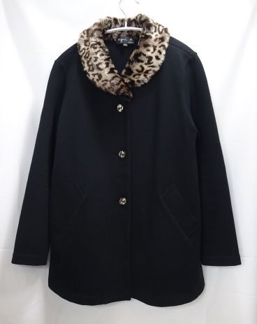 agnes b. 日本製 襟にヒョウ柄フェイクファーがあしらわれた、コットンジャケットです。 ストレッチの効いた やや厚手のコットン生地です。 裏側は起毛していません。 フロント左右にポケットあり。 |
