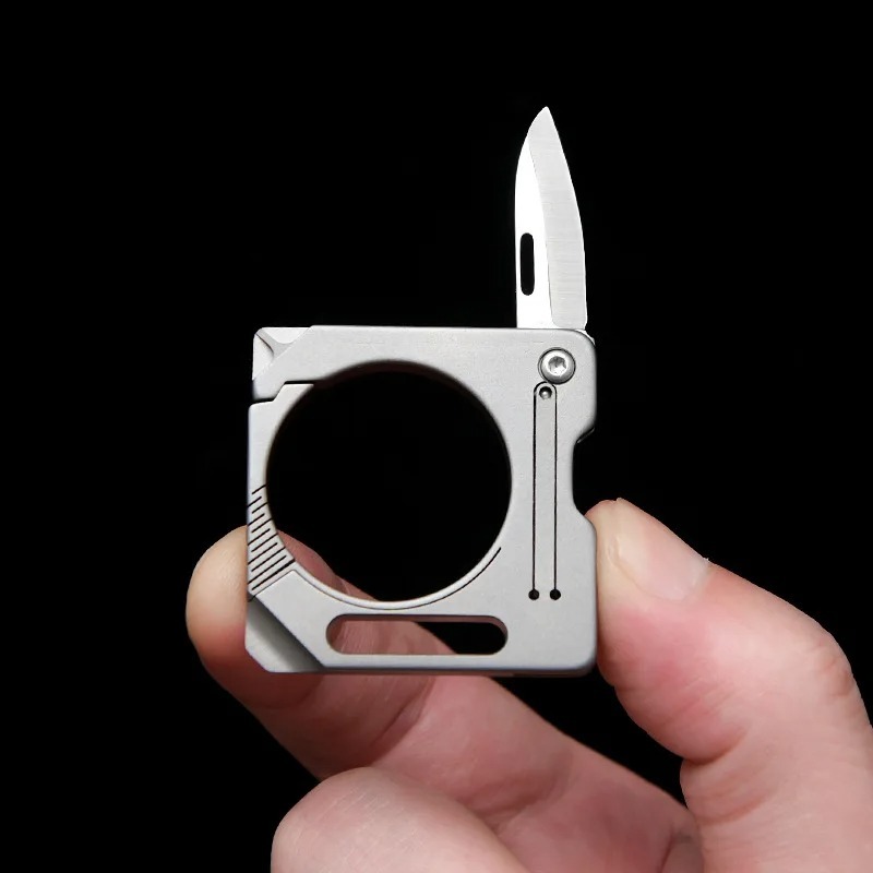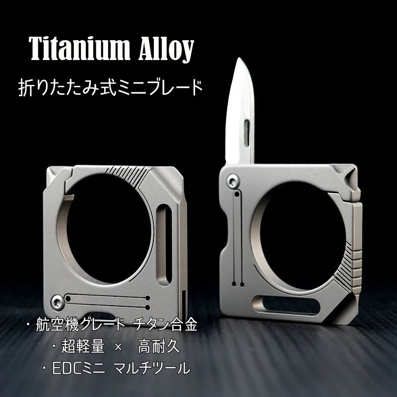 本製品は、軽量かつ高強度のチタン合金を使用した多機能EDCツールです。 折りたたみ式ブレードで段ボール開封などに便利、さらにキーホルダーとしても使用できます。 キャンプや日常携帯に適したシンプルで高耐久なデザインです。 ■ 特徴 ・折りたたみ式ミニブレード ・キーリング搭載 ・プラス溝ドライバー機能 ・高耐久チタン製 ・小型・軽量で携帯性抜群 ■ 仕様