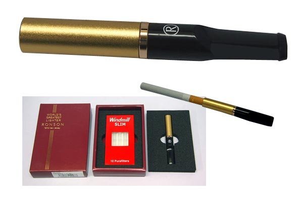 《< 新品正規品 RONSON(ロンソン)タバコ用(85mm用)ホルダーRHL-0202(ゴールド)7,3cmフィルターセット >》