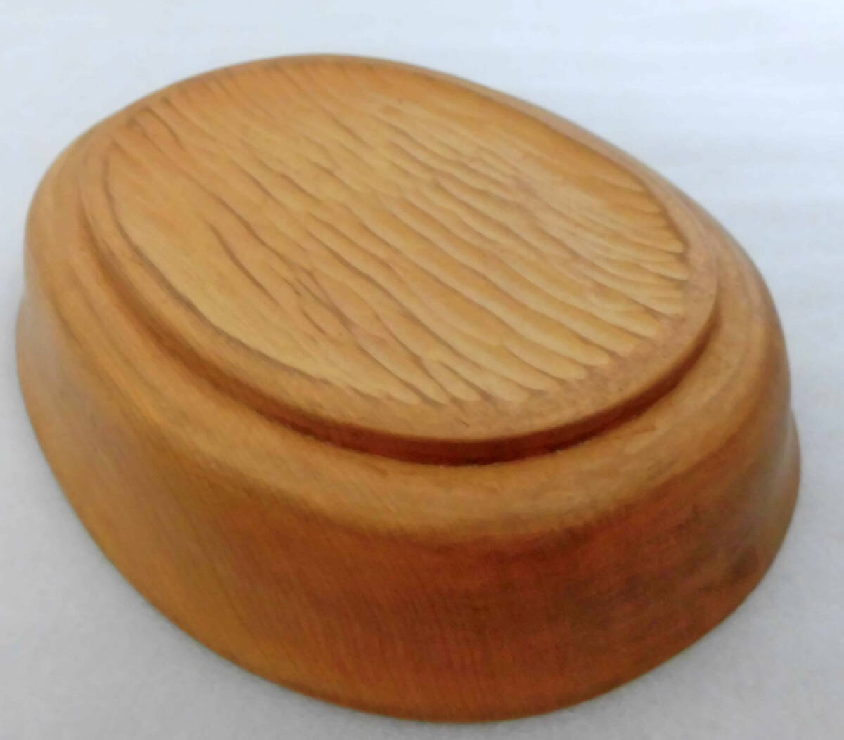 品名:唐木小判盆・自在盆 煎茶道具 作家:日本製(手刳り) 寸法:≒15.4x12.1㎝ 丈3㎝ 状態:裏面、反り止めの丁寧なノミ目があります。 できるだけ説明いたしますが、写真でご判断ください。 写真の色の誤差はご容赦ください 出品者の主観です:使用感あります。反りワレヒビなどありません。 | |||