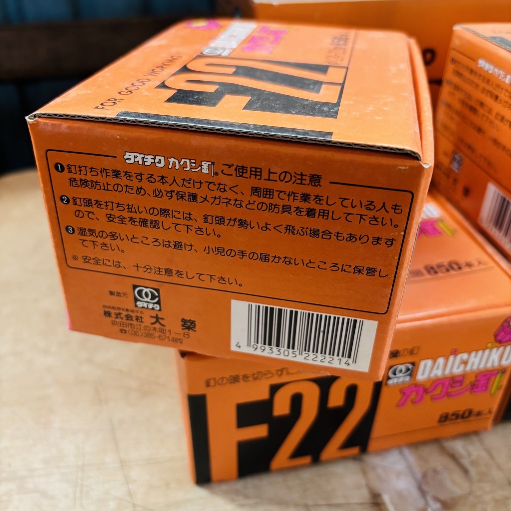 | DAICHIKU ダイチク カクシ釘 F-22 1箱850本入×6箱 合計5100本 未使用保管品 隠し釘 カリクギ 仮釘 | ||