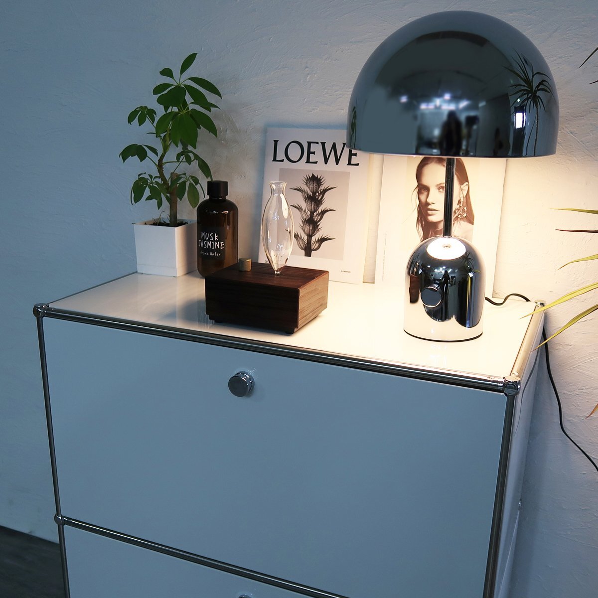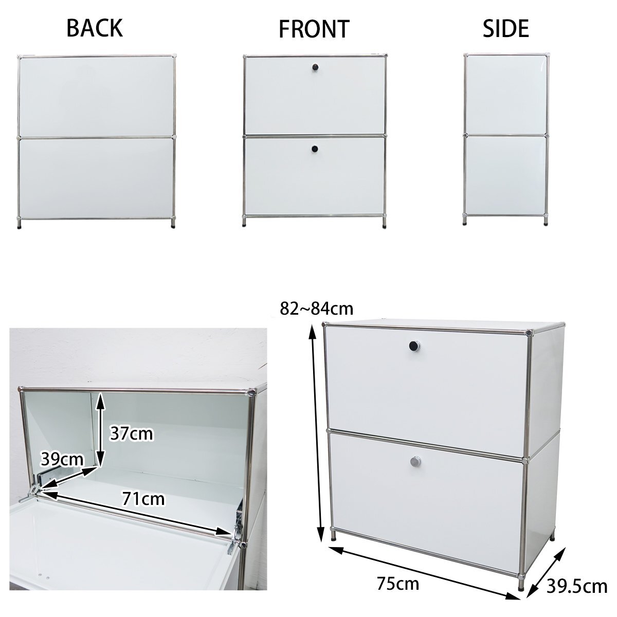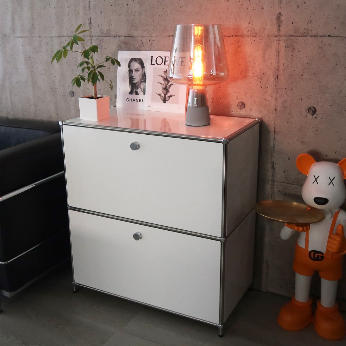![]() ※こちらの商品はリプロダクト品になります。 当店オリジナルのデザイン収納「Module(モジュール)」 当店人気のリプロダクトハラー(HL-品番)を販売以来、多くのお客様からご要望を頂いていた 「組み立て簡単」で「手軽に購入出来るハラーが欲しい」との声にお応えし、 スタッフ一同で長い試作期間を設けた末に販売出来る運びとなった当店オリジナルの収納家具です。 見た目の違いはあれど、デザインを崩さない事に重視し、 組み立てのしやすさや収納としての使い勝手の良さにもこだわって製作した末、 誕生したのがこの「Module(モジュール)」です。 ドロップダウンドアが付いた2段のサイドボード。 一つの棚の内側は、A4ファイルを縦にしても横にしてもぴったり収納できる高さと奥行で、 平置きでは3つ並べて置くことができる幅があります。 ドロップダウンドアはソフトクローズシステム仕様 通常の仕様ではドアを閉じる際に大きな音がしますが、 ソフトクローズシステムは8割程閉じた時点でゆっくりと静かに自動で吸い込むようにドアが閉まります。 リビングルームやワークスペースなど幅広い場所で活躍する、使い勝手の良いサイズです。 USMハラーとは・・・ スイス人建築家Fritz Haller(フリッツ・ハラー)と スイス家具メーカーUSMの3代目経営者Paul Schaerer(ポール・シェアラー)が、 1963年に協働してモジュラーシステム家具です。 サイズ(約):幅75cm×奥行き39.5cm×高さ82cm(アジャスター引き伸ばし時、84cm) 重量(約):20.5kg 材質: ・フレーム:スチール(クロムメッキ) ・パネル:スチール(パウダーコーティング) カラー:ピュアホワイト