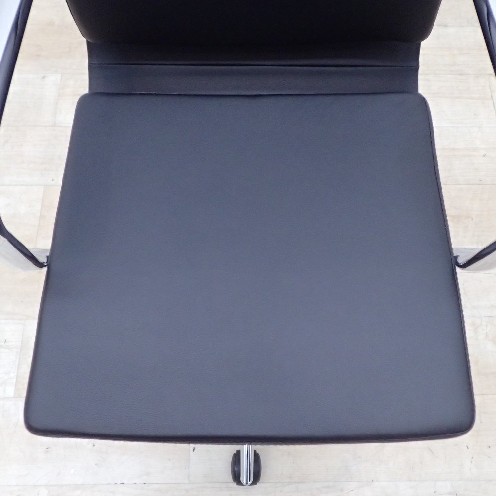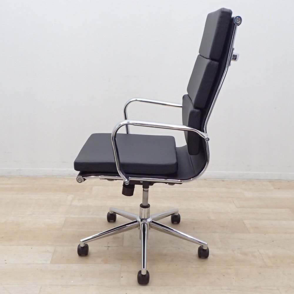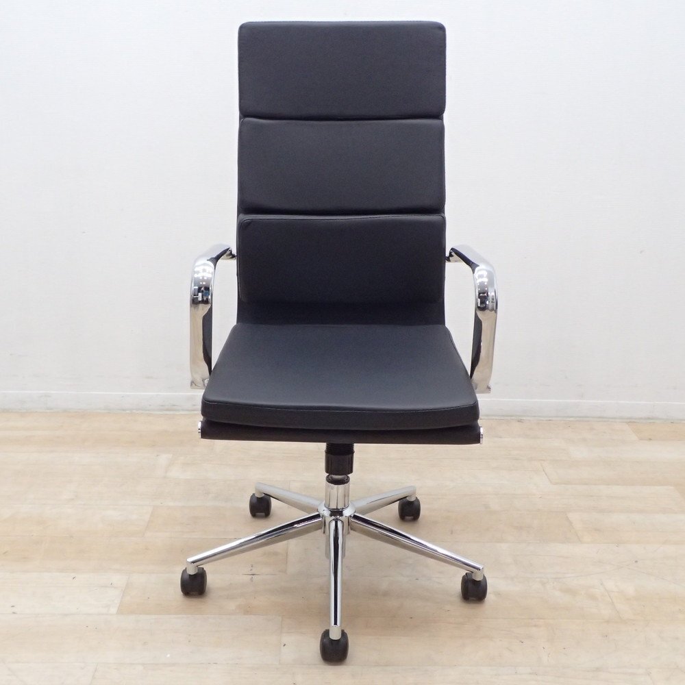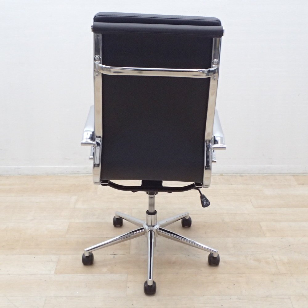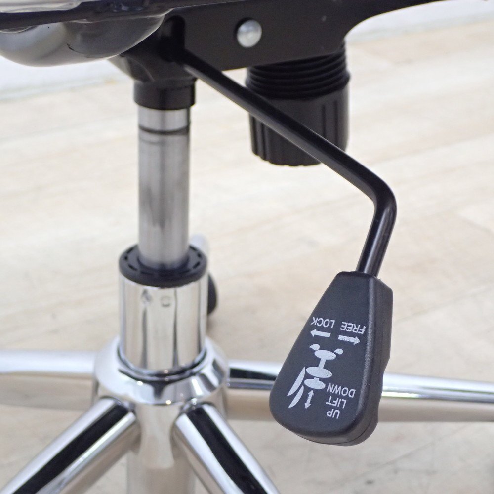 井上金庫のAPS-H04は、しっかり身体を支えてくれるハイバックタイプのオフィスチェアです。 ブラックのPU&PVC張りでお手入れしやすく、ほどよいクッション性で長時間のデスクワークにも快適。 背と座が連動して動くロッキング機能があり、作業の合間に軽く体を預けてリラックスできます。 座面の高さ調整もスムーズ!さらにキャスター付きで移動しやすく、スチール脚でしっかり安定しています。 使用感は少なめで、生地擦れなども少ない比較的きれいなワークチェアです。ぜひ! |
