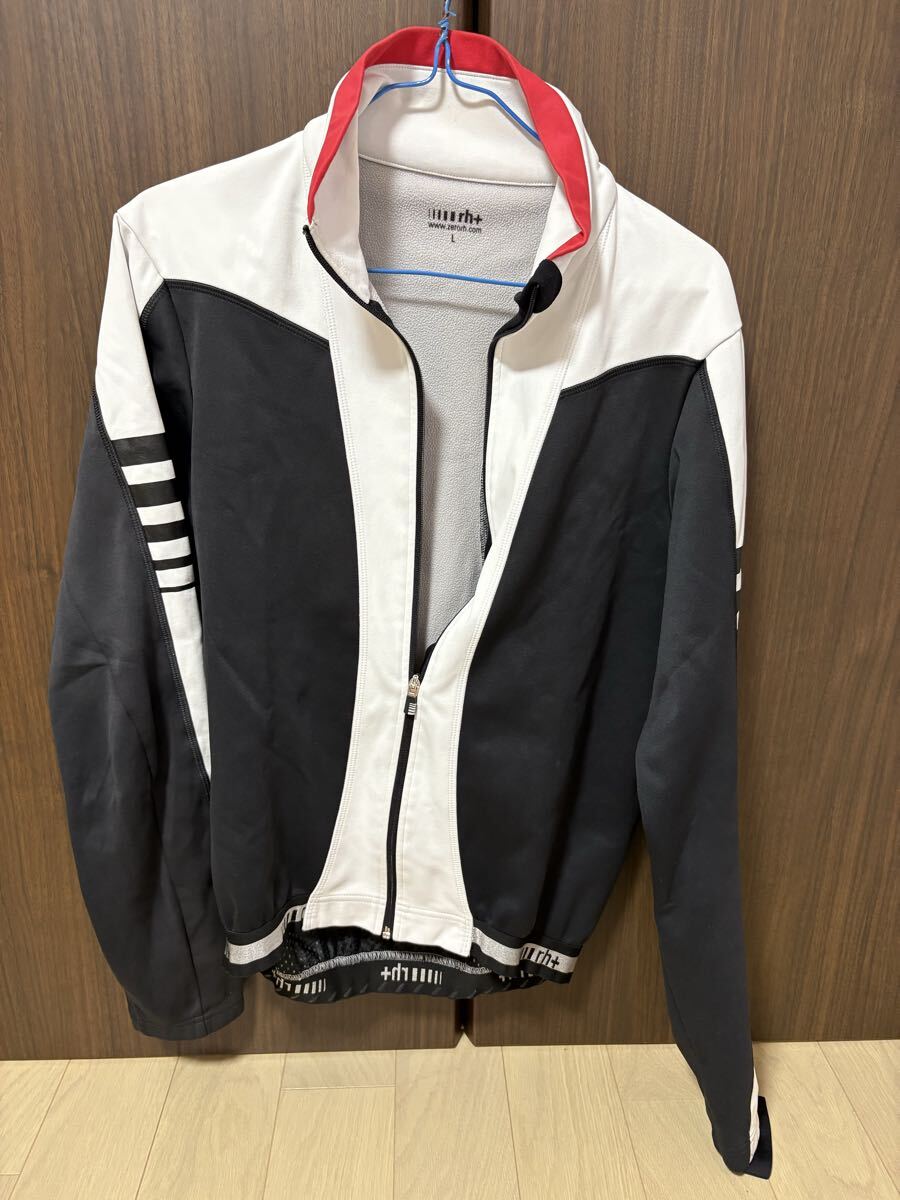 zerorh+ のサイクルジャケット 裏起毛あり、軽いです。サイズLです。ずいぶん前になりますがワイズロードの実店舗にて新品購入した物です。ジャケットは複数あるので着用頻度はそれほどなくまだまだ着れると思います。両腕にあるロゴデザインは光沢のあるプリントですが洗濯によりコーティングが少しはがれ気味です。また背面の中央にチャック付きのポケットの淵の反射材がはがれ気味です。なので、やや傷や汚れありと致しましたが、汚れはないと思います。但し古着でありますので、神経質な方はご遠慮下さい。