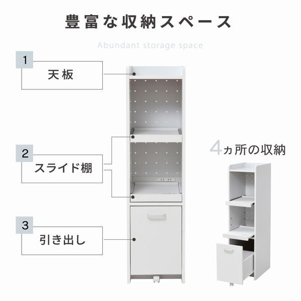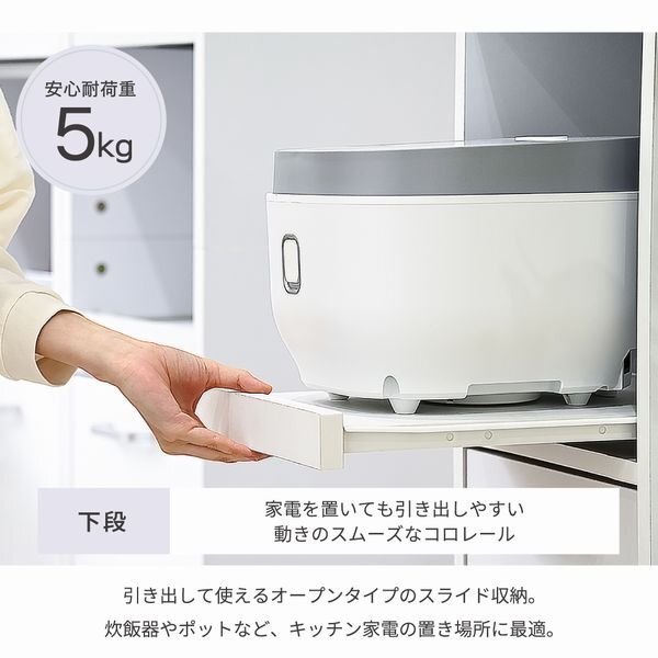 | 隙間タイプのキッチン収納。 ちょっとした隙間や収納スペースにお困りの方にぴったりな、スリムタイプの家電収納家具。 家電が2台収納できる、高さ120cm |