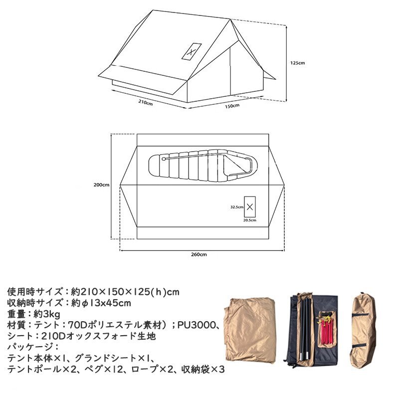 【一人でも簡単設営・UVカット・防水】テント本体の生地は高品質70オックスフォードとして、超軽量素材で一人で組立もできます。裏面にポリウレタン樹脂(PU)でコーティング加工を施す加工、優れたUVカットで、真夏の日差しからしっかり肌を守ってくれます。しかも耐水圧はなんと3000mm以上になって、大抵の雨には対応できます。またテントのポールの素材はアルミニウム合金製なので、軽くてサビにくいです。| 出价者 | 信用 | 价格 | 时间 |