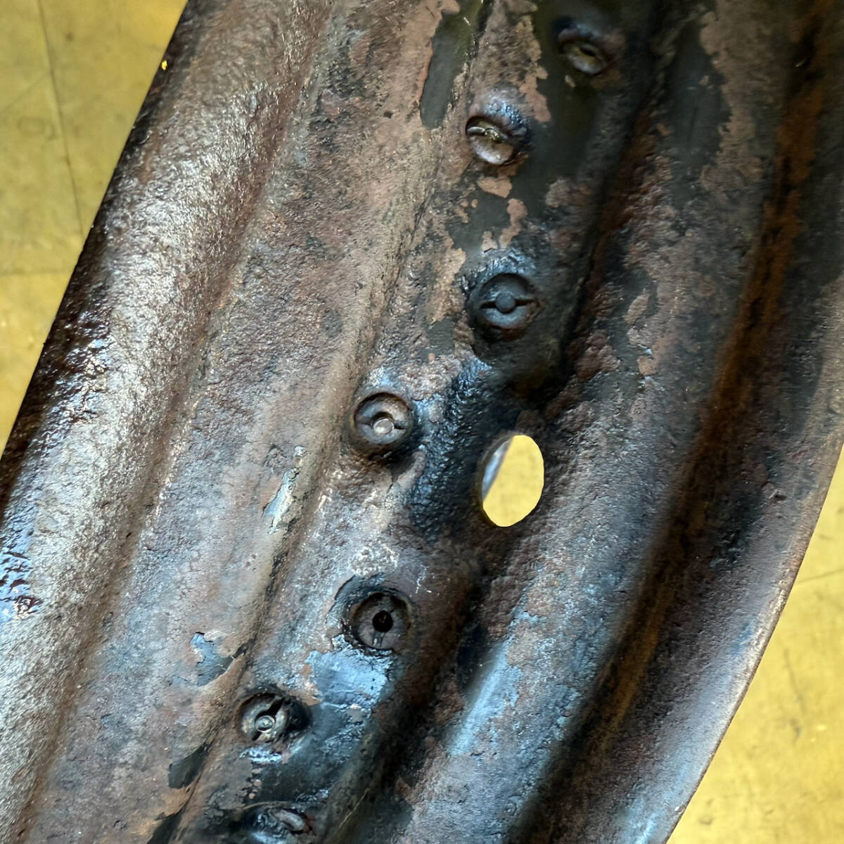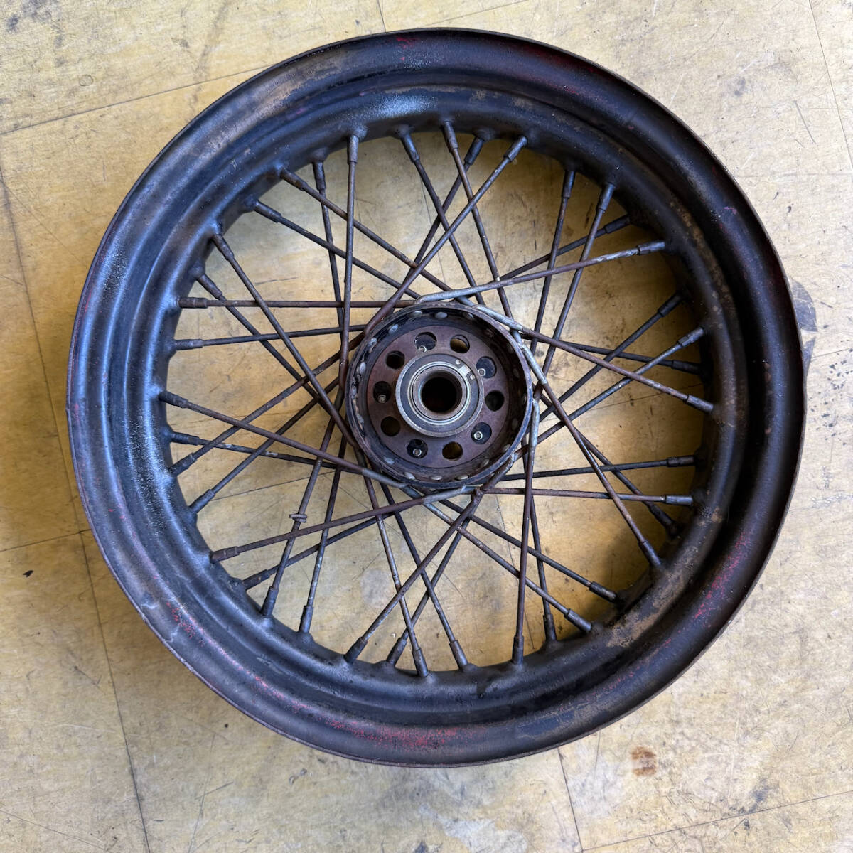 16インチスターホイル 1cmほどリム歪みあり ハブに溶接箇所あり 職人なら修理可能 送料込み!H-D純正と思います。エイジングではないです なにか問題あればいつでもラインお待ちしています。鮮明な動画も送れます お電話は対応しておりません。