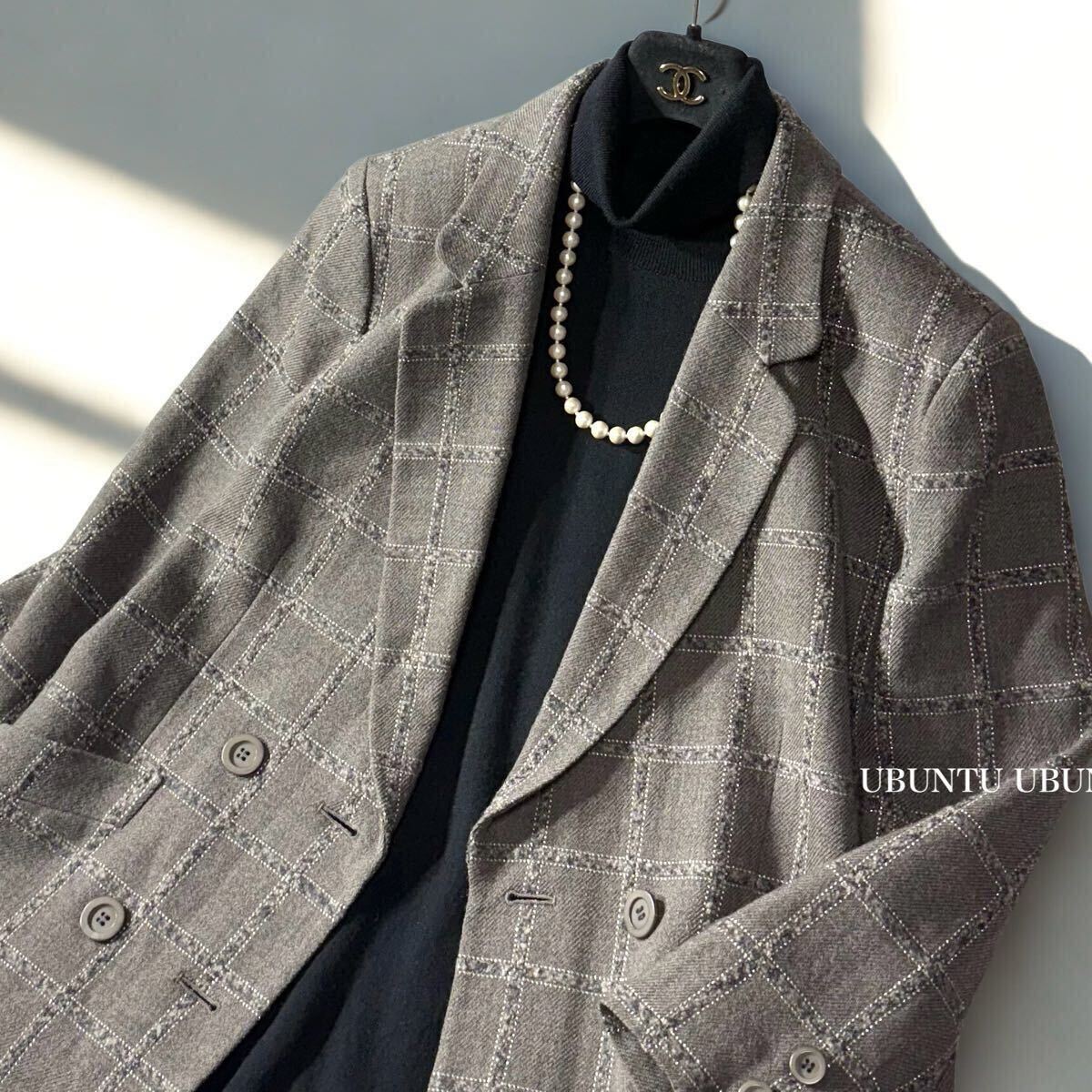ダブルブレストデザインでクラシックな雰囲気がありつつ、羽織るだけで全体が上品にまとまるおしゃれ感◎