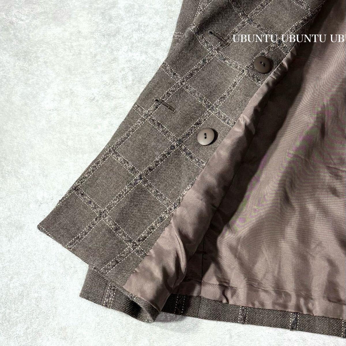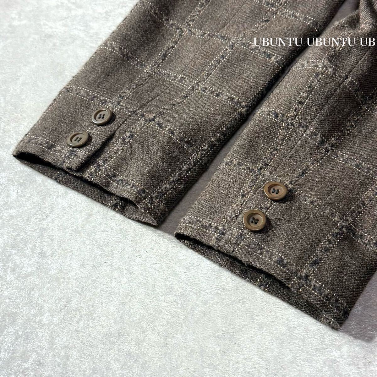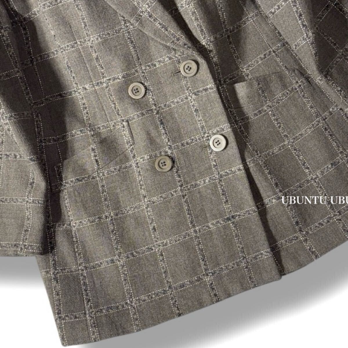 グレージュ(ベージュ寄りの上品グレー)をベースに、ミックスヤーンのツイード生地で描かれたブロックチェック柄。