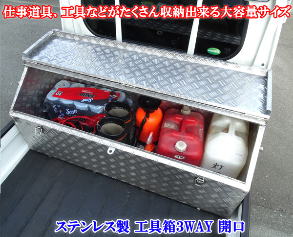 | 商品使用説明動画、製造工場紹介動画付き!軽トラック ハイゼットトラック ジャンボ スーパー キャリィ アクティ NT100 シルバー 縞模様 ステンレス 工具箱 3WAY 大型 ツールボックス | ||