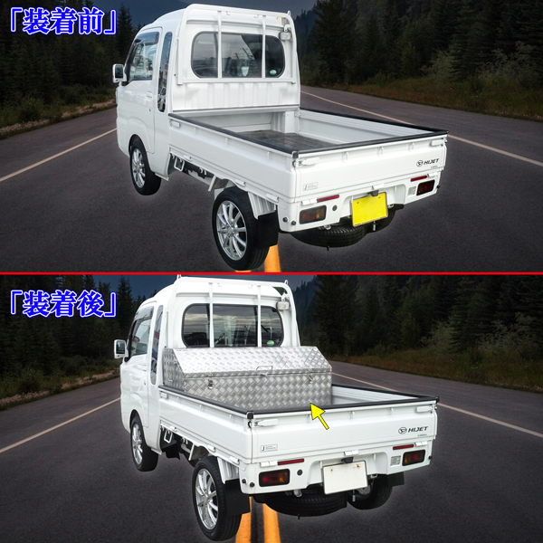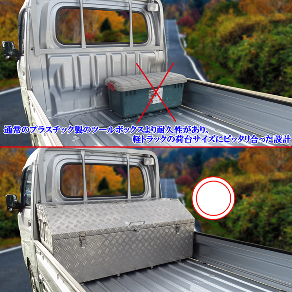 | 商品説明 | 軽トラック ハイゼットトラック ジャンボ スーパー キャリィ アクティ NT100 サンバートラック シルバー 縞模様 ステンレス 工具箱 3WAY 大型 ツールボックス