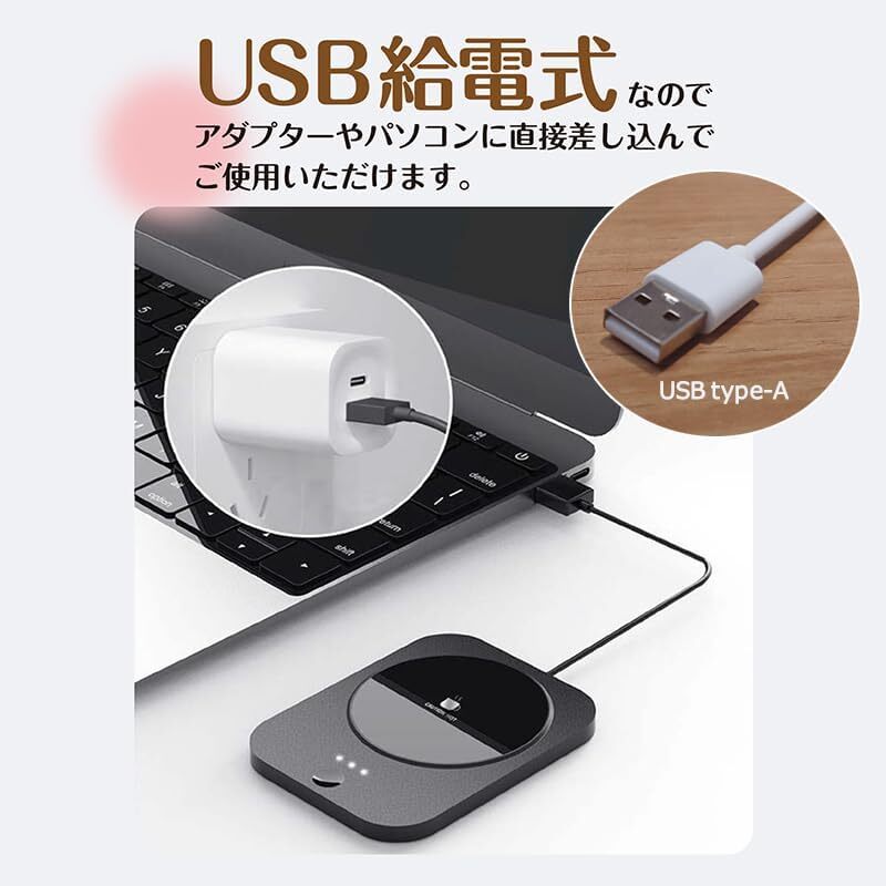 【便利】他のプラグインマグウォーマーと比較して、USBインターフェースを使用する飲料ウォーマープレートは、ラップトップ、旅行用充電器、または他のUSBデバイスなどのUSB互換デバイスに快適に接続できます。