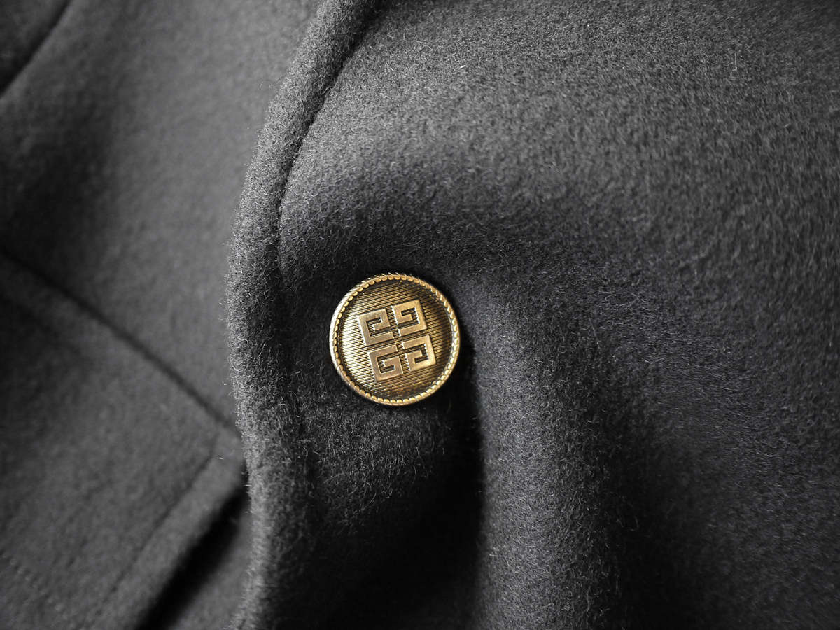 ジバンシーのウールメルトンダブルブレステッドコートでございます。ムダをそぎ落としたミニマルデザイン、トレンド感のあるボックスサイジングのモダンなプロポーション、ジバンシーならではのモードテイストが随所に体現されたウィンターコートです。