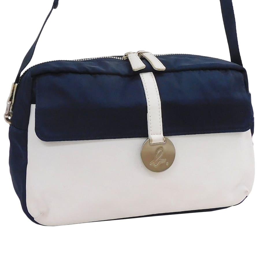 1円■美品/アニエスベー/ショルダーバッグ/ナイロン×レザー/ネイビー系×ホワイト系/レディース/agnes b. ■E.App.pS-13[中古]