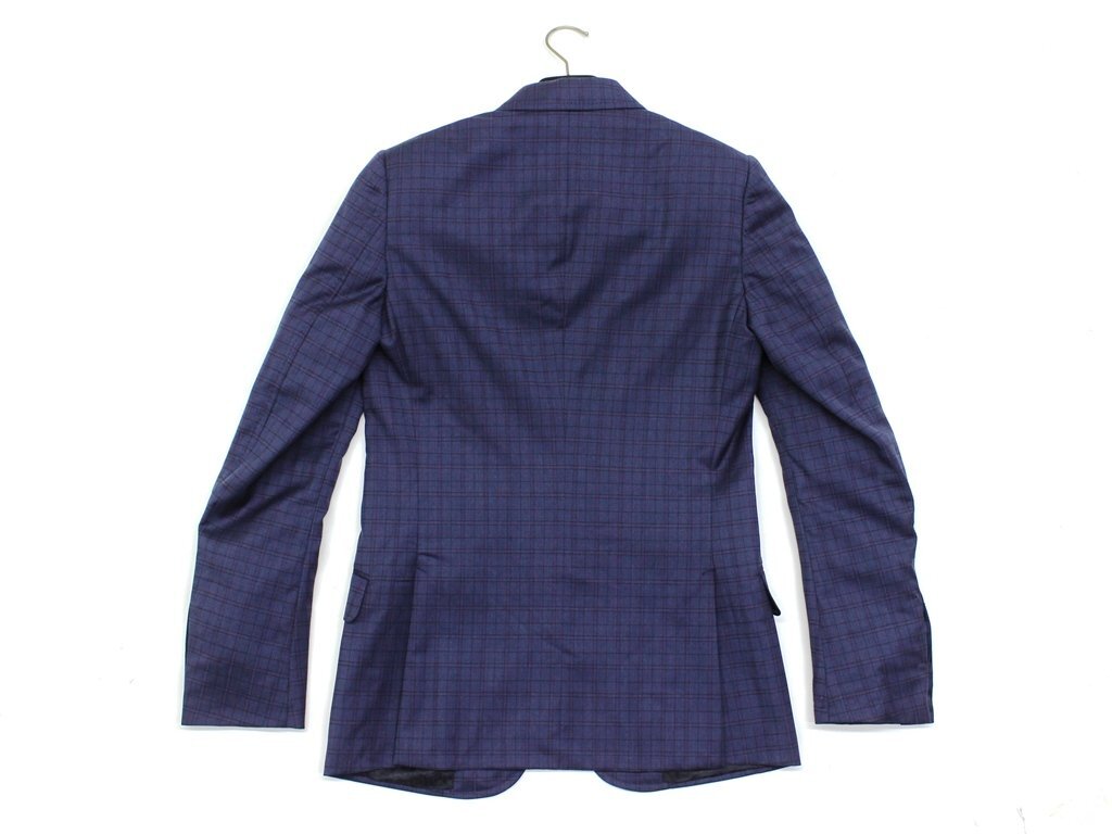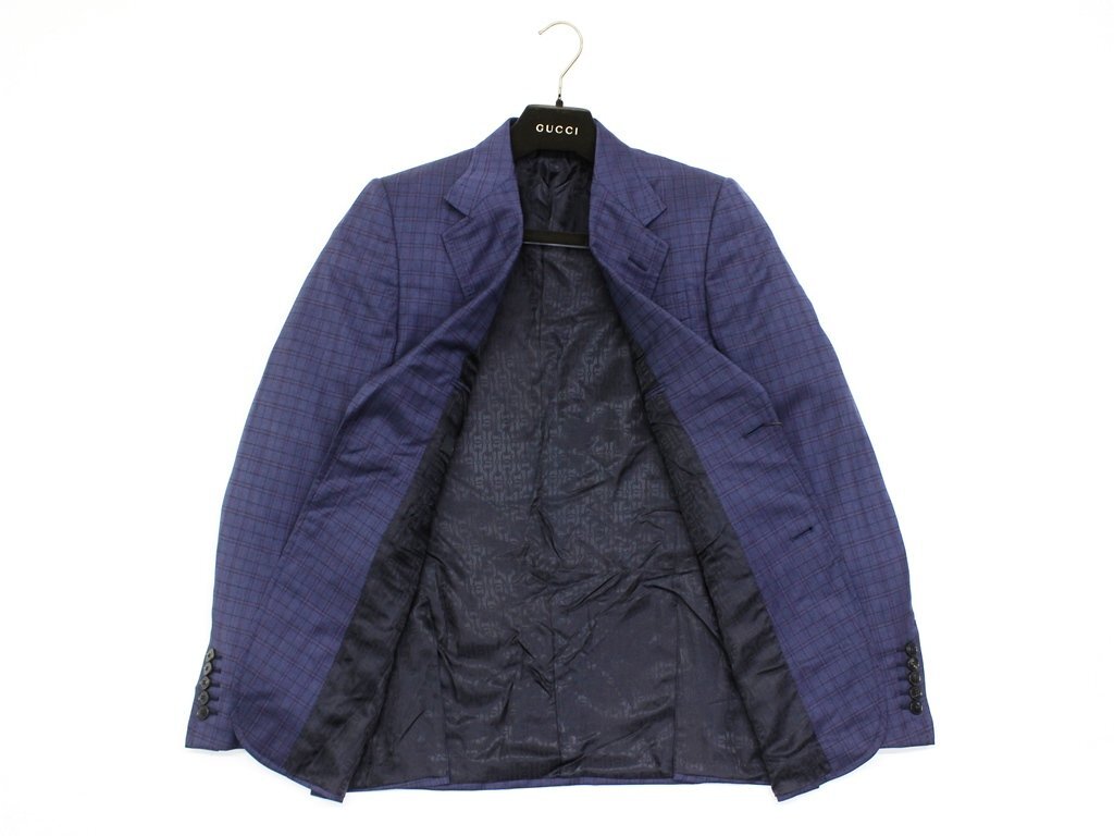 65万新品◆46=S◆GUCCI グッチ 格子チェック柄 ホースビット ウール100%スーツ 紺×赤 ネイビー
