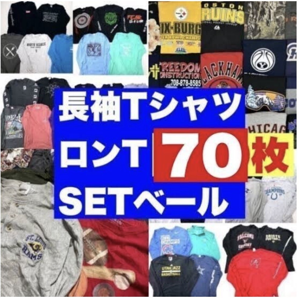 長袖 Tシャツ シャツ 70着 ×2 計140着 まとめ売り まとめて セット 古着 ウエス 卸 プリント 無地 ビジネス ストリート 他 ベール セール0
