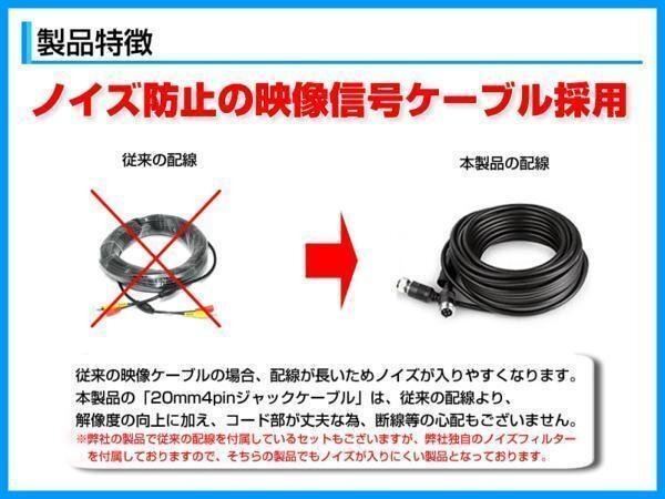 | 外観:角型 固定方法:ネジ固定 センサー:CMOS 水平解像度:480TVL 視野角:広角120° 出力映像:鏡像 ガイドライン:無し 映像出力端子:専用4ピン 耐衝撃性:10G ビデオ出力:1.0Vp - p75Ω 定格電圧:DC12V / DC24V 本体サイズ:横66mm × 高さ20mm × 奥行63mm 本体重量:約280g 映像ケーブル長さ:約20m |