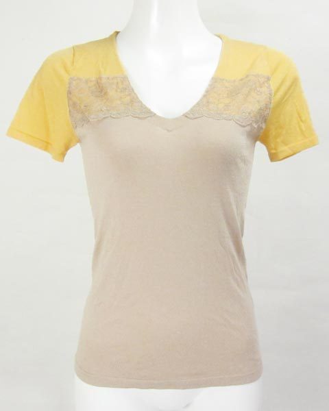| ピンキー&ダイアン PINKY&DIANNE イエロー×ベージュ半袖ニット 38 |