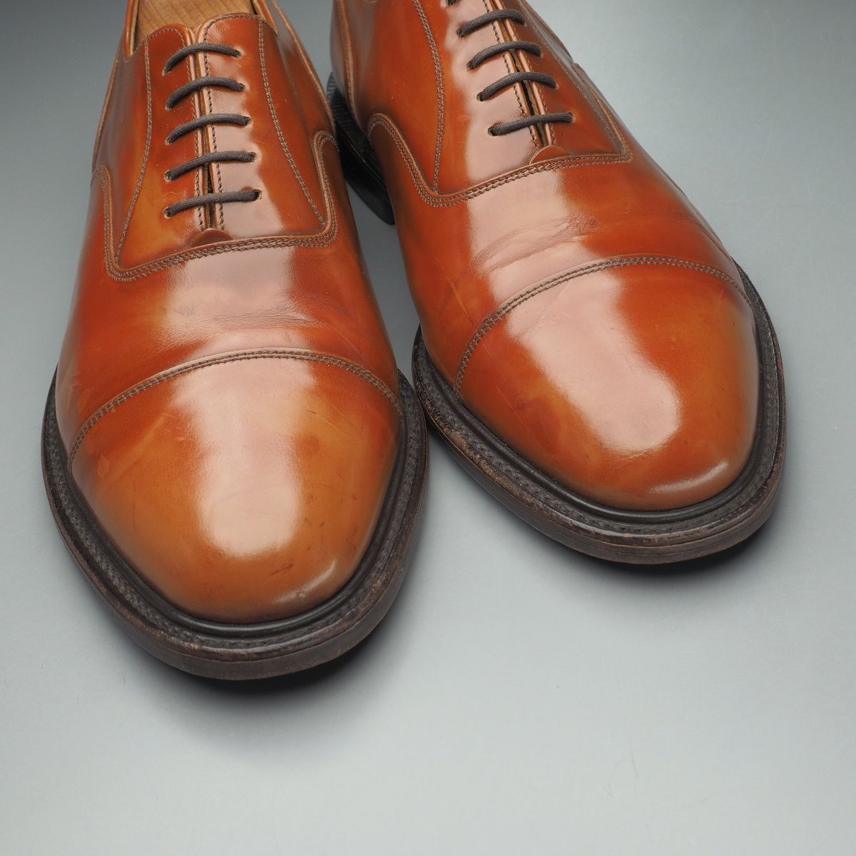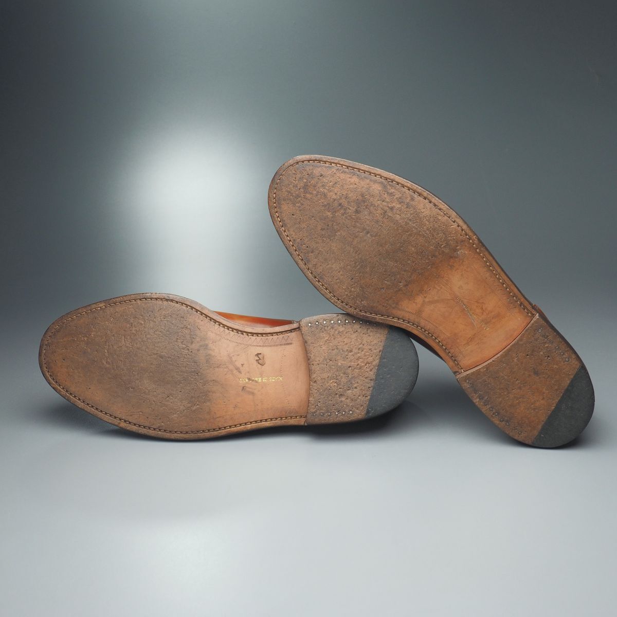 1857年創業の英国の老舗シューズブランド「ジョーンズ/JONES BOOTMAKERS」の一足です。 ハリ・光沢を併せ持つ茶のガラスレザーをアッパーに用いたキャップフロントのオックスフォードモデル。 アウトソールはダブルソール仕立て、底付けにはストームウェルト仕様のグッドイヤーウェルテッド製法を採用し、堅牢に形作られております。 製法:グッドイヤーウェルテッド アウトソール:レザー トップリフト:レザー×ラバー ライニング:レザー 生産:イングランド製 ※撮影用のシューキーパーは付属致しません。 ※本物の商品ですのでご安心の上オークションをお楽しみ下さい。 ※タイトル頭の英数字は弊社の管理番号です。 ※ほかにも多数の商品を出品しています。 ※同梱に関しましては「まとめて取引」でのみ対応可能です、その他の方法での同梱対応は出来かねます。 (※商品の特性上、同梱対応出来ない商品もございますので予めご了承下さい。) |