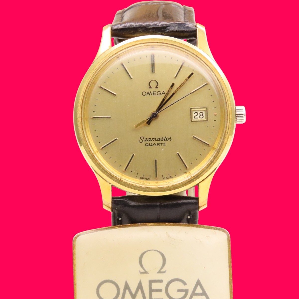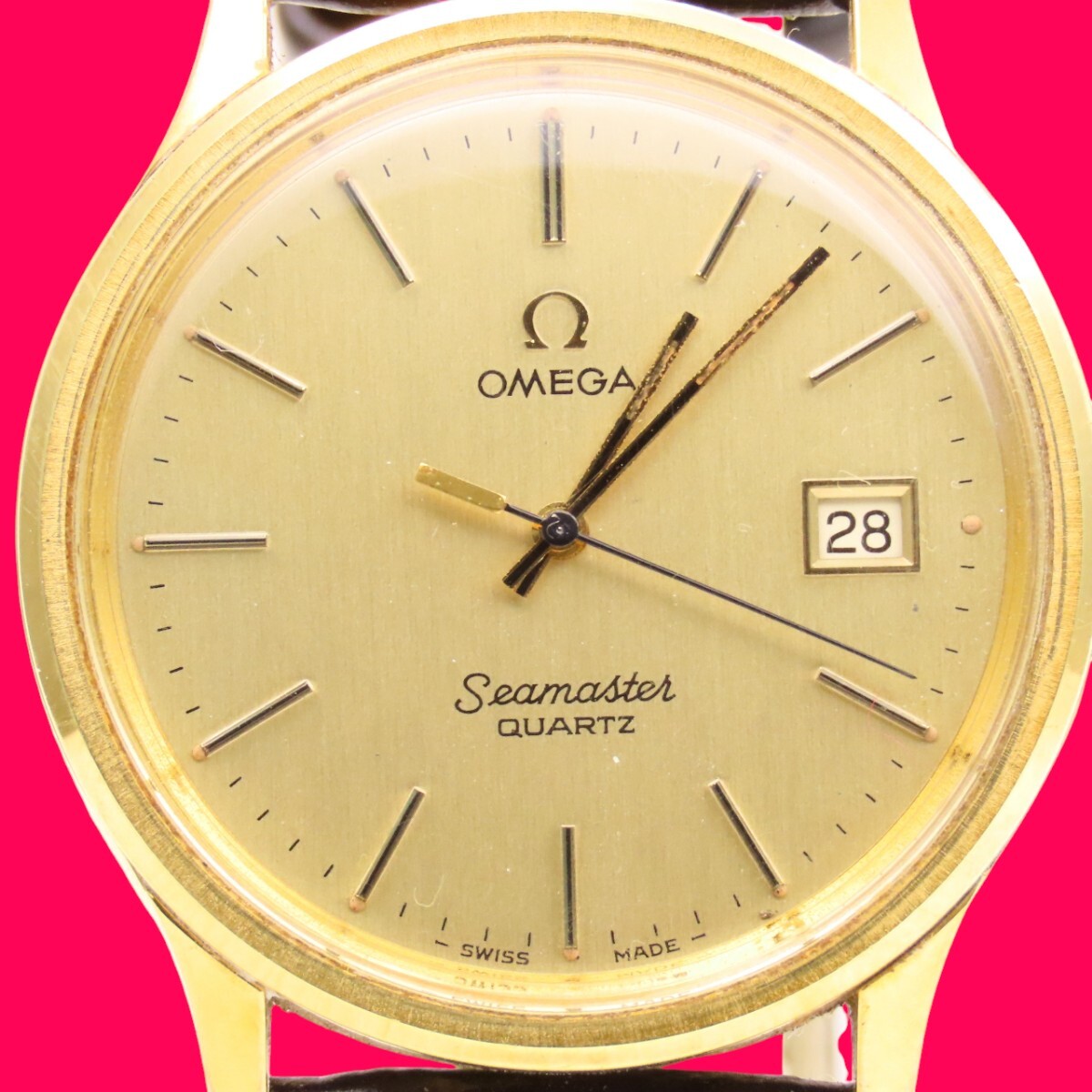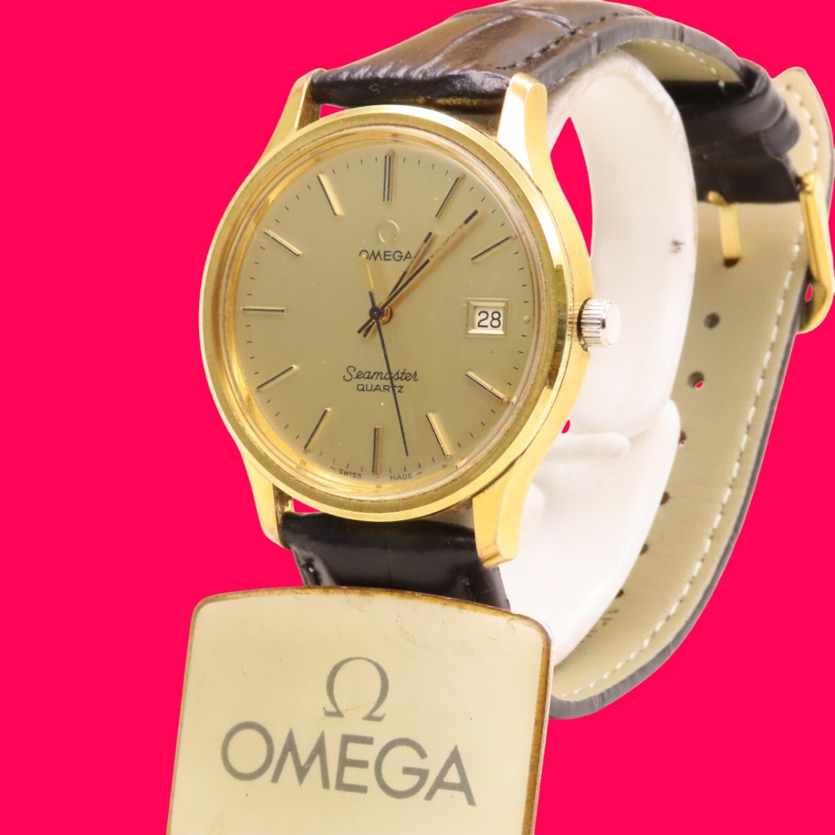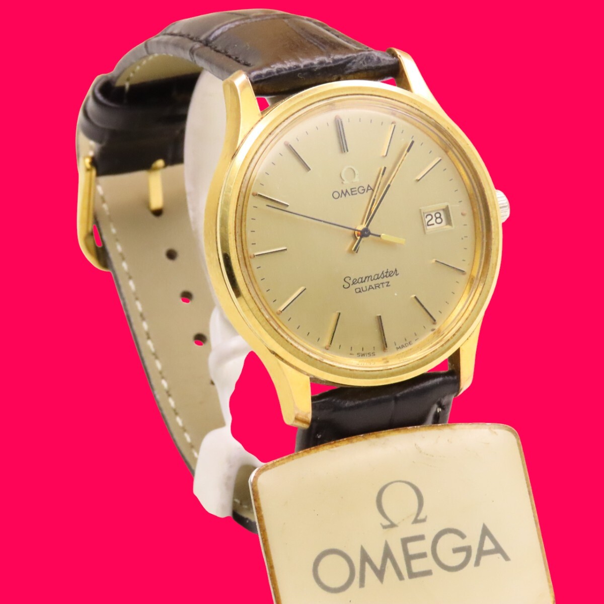 ■♪価格高騰! 資産価値!稼働 電池新品 メンズ ビンテージ 高級超レア! OMEGA オメガ シーマスター Seamaster デート クオーツ ベルト新品| 出价者 | 信用 | 价格 | 时间 |