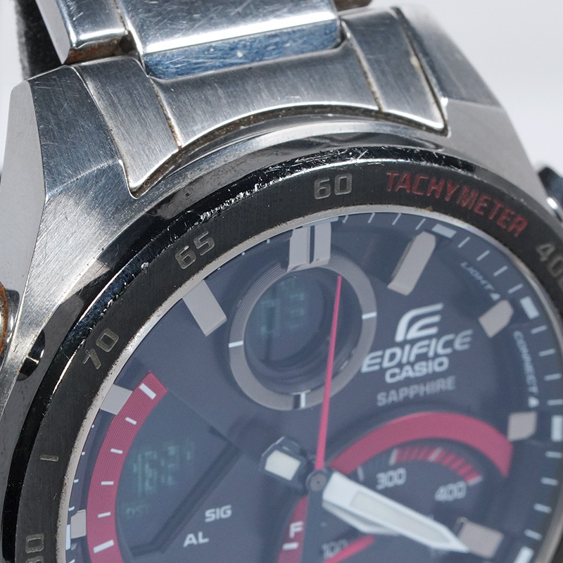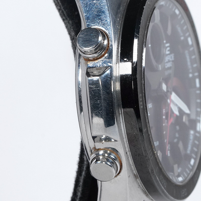ベゼル、風防含む全体に傷や汚れがあり、ベゼルやケースには打傷もございます。 多機能のため、全ての動作確認はできておりません。 稼働品で、現状時刻は合っておりますが、お手元に届いてからの状態保証はいたしかねます。 | |||